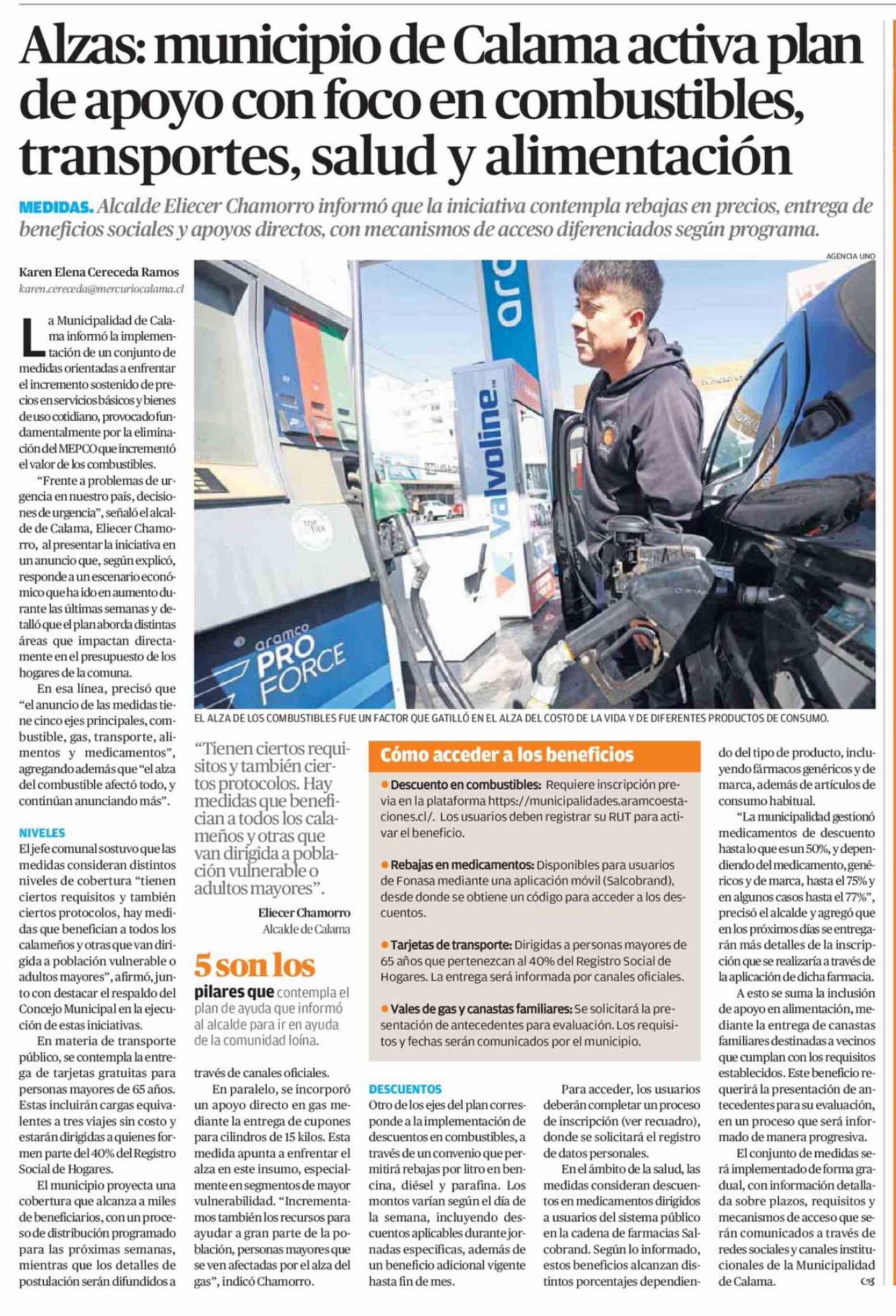 Alzas: municipio de Calama activa plan de apoyo con foco en combustibles, transportes, salud y alimentación