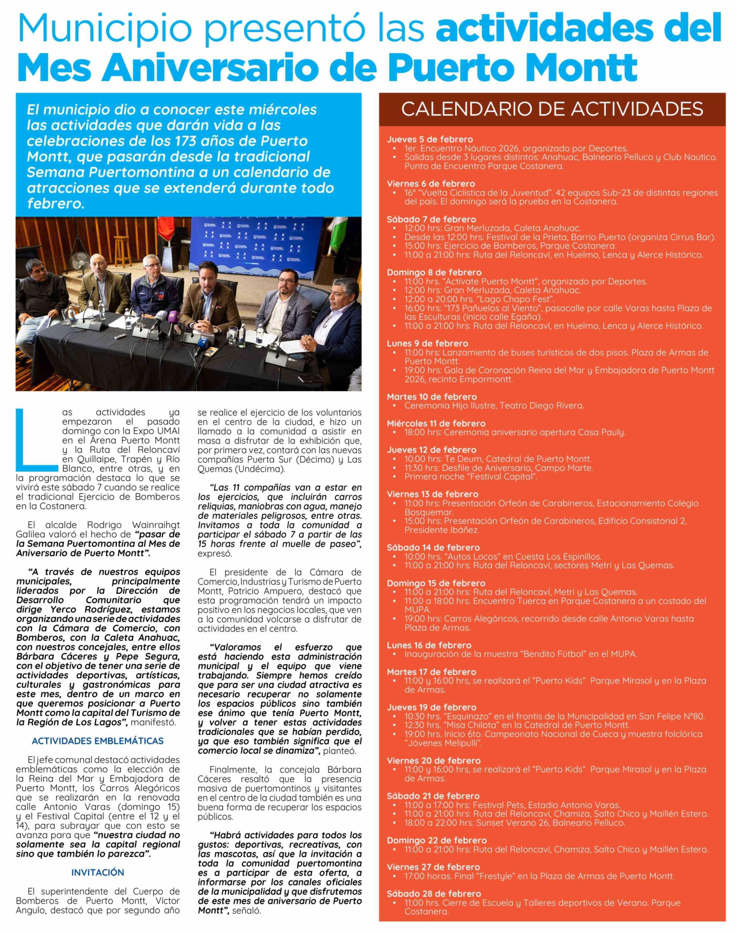 Municipio presentó las actividades del Mes Aniversario de Puerto Montt