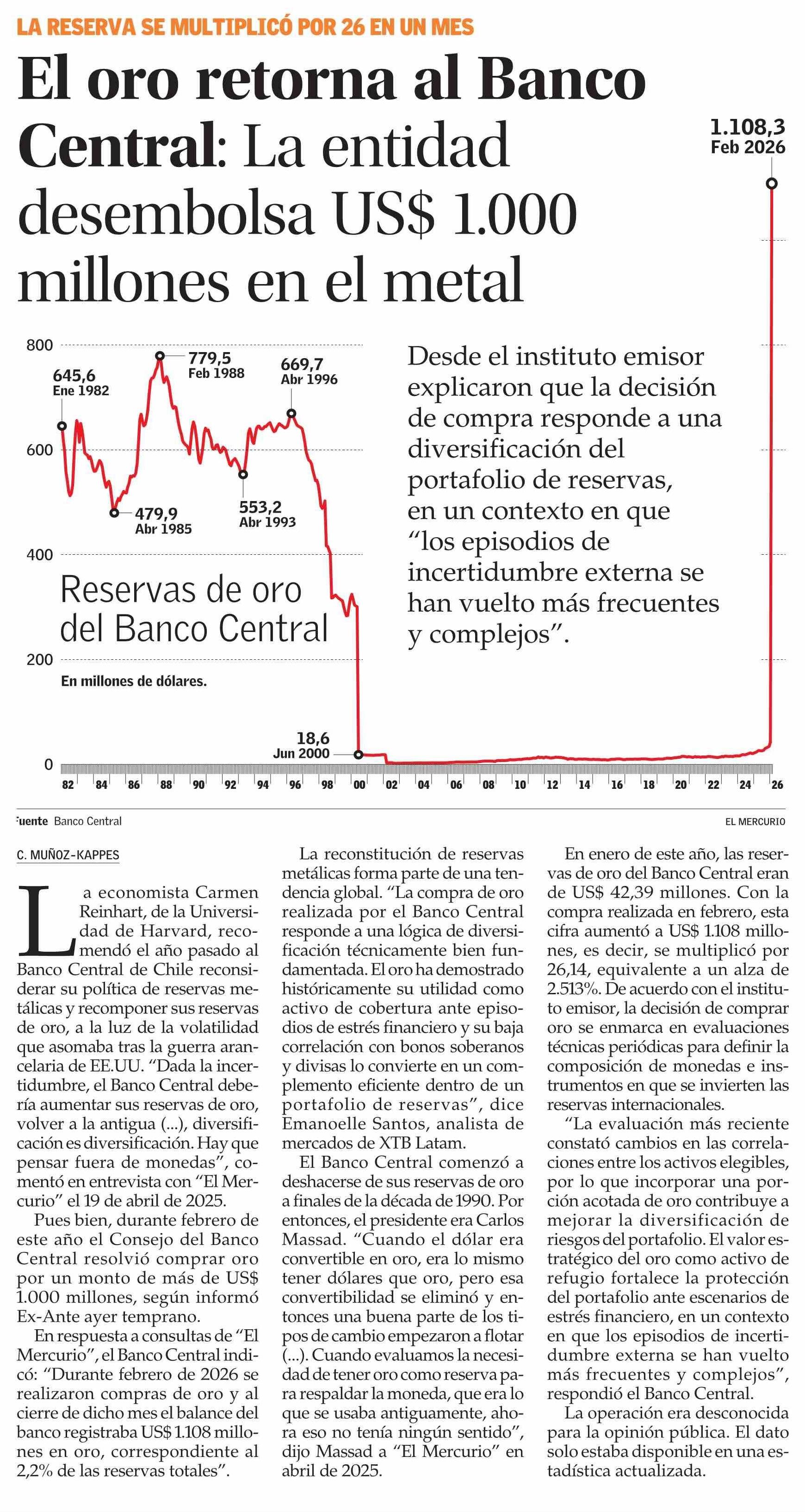 El oro retorna al Banco Central: La entidad desembolsa US$ 1.000 millones en el metal