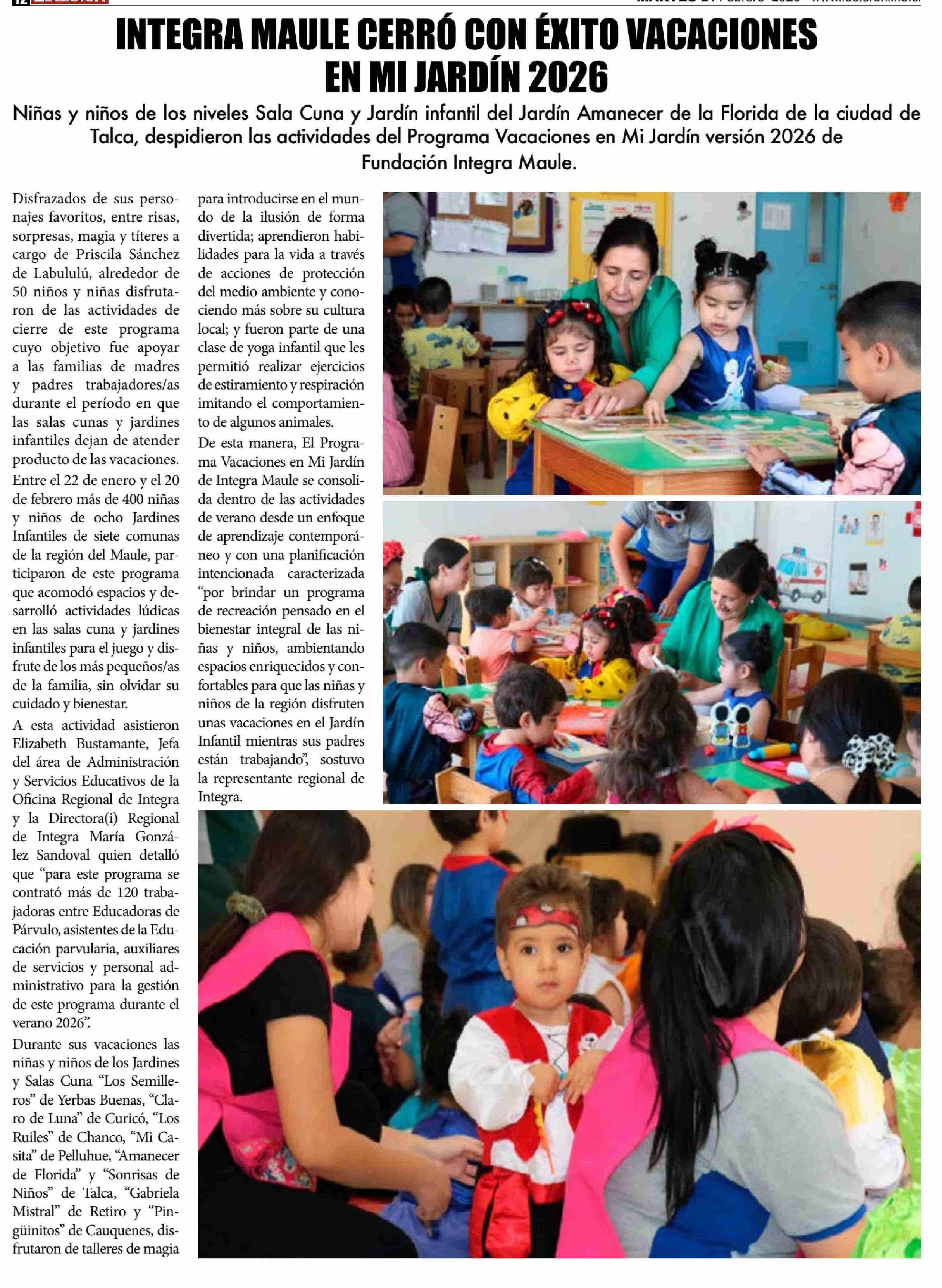 INTEGRA MAULE CERRÓ CON ÉXITO VACACIONES EN MI JARDÍN 2026