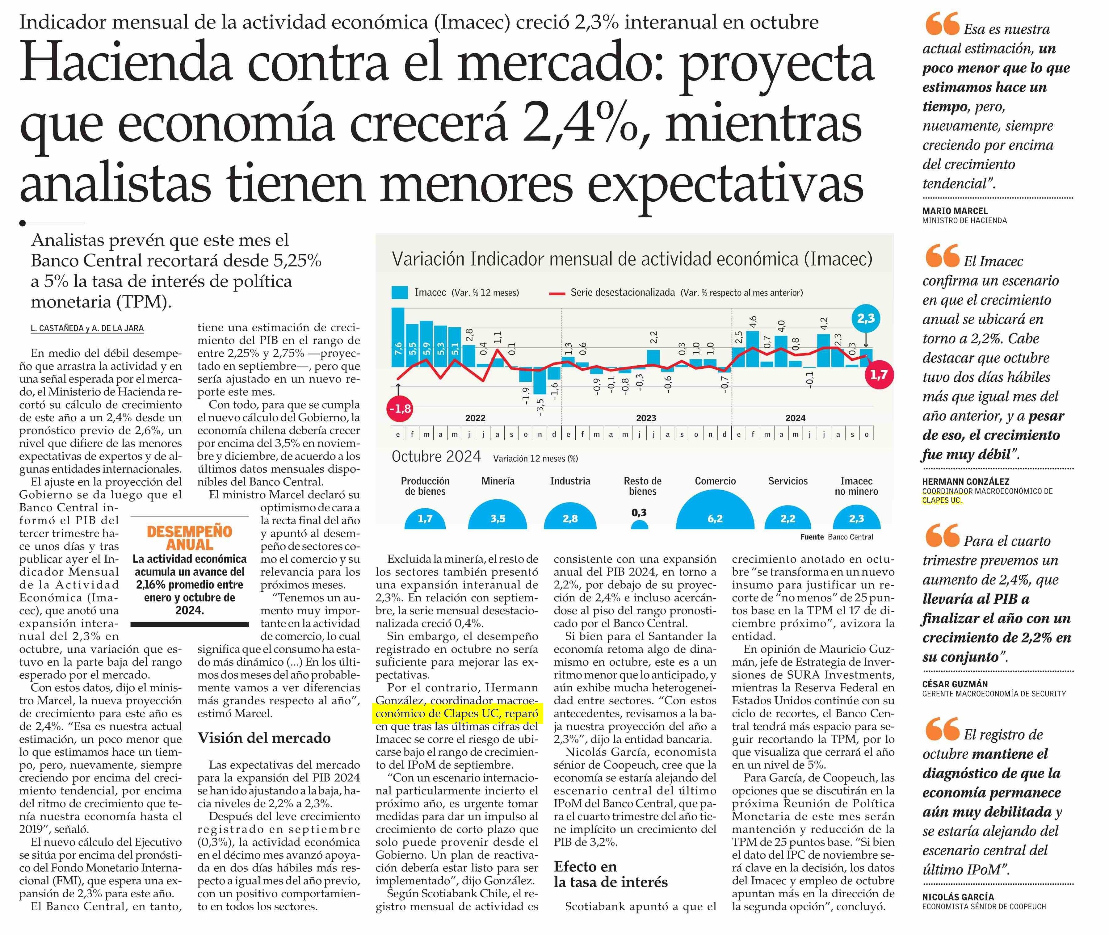 Hacienda contra el mercado: proyecta que economía crecerá 2,4%, mientras analistas tienen menores expectativas