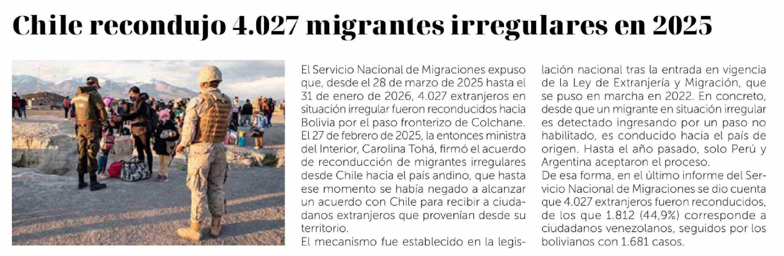 Chile recondujo 4.027 migrantes irregulares en 2025