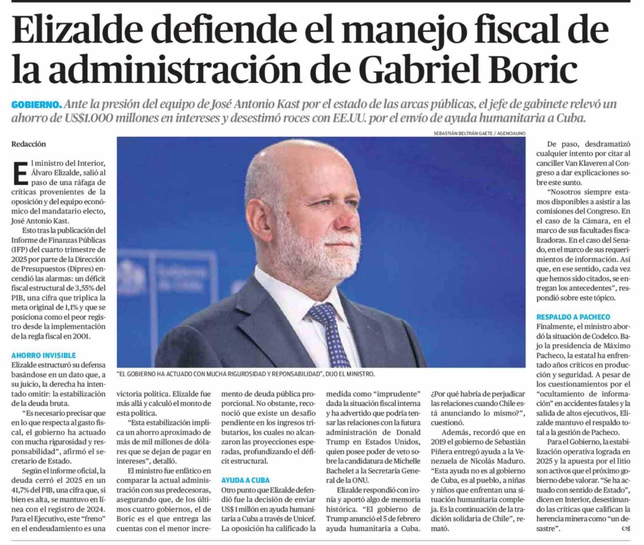 Elizalde defiende el manejo fiscal de la administración de Gabriel Boric