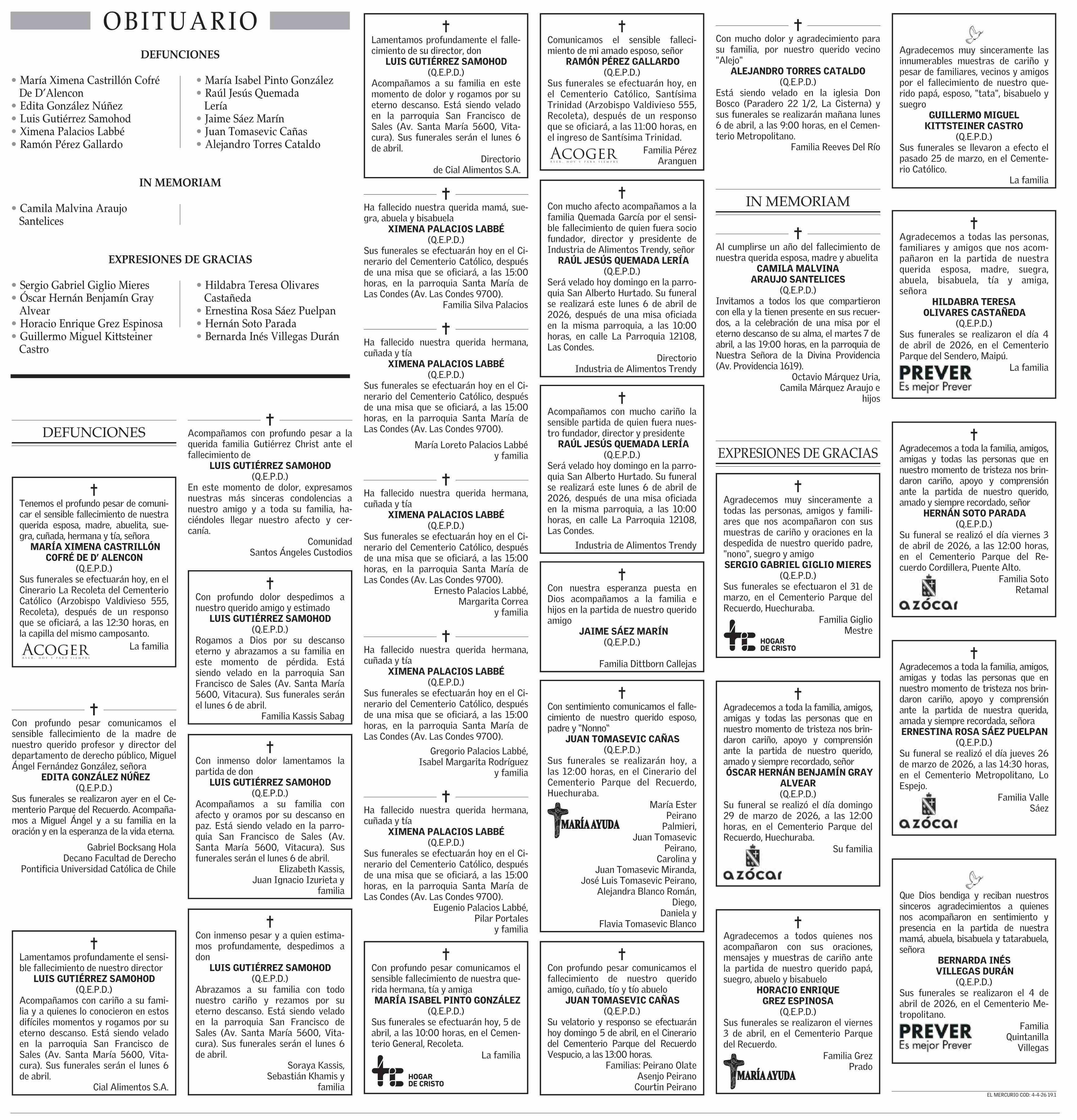 Obituario: DEFUNCIONES