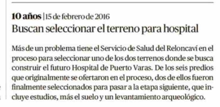 10 Años |15 de febrero de 2016 Buscan seleccionar el terreno para hospital