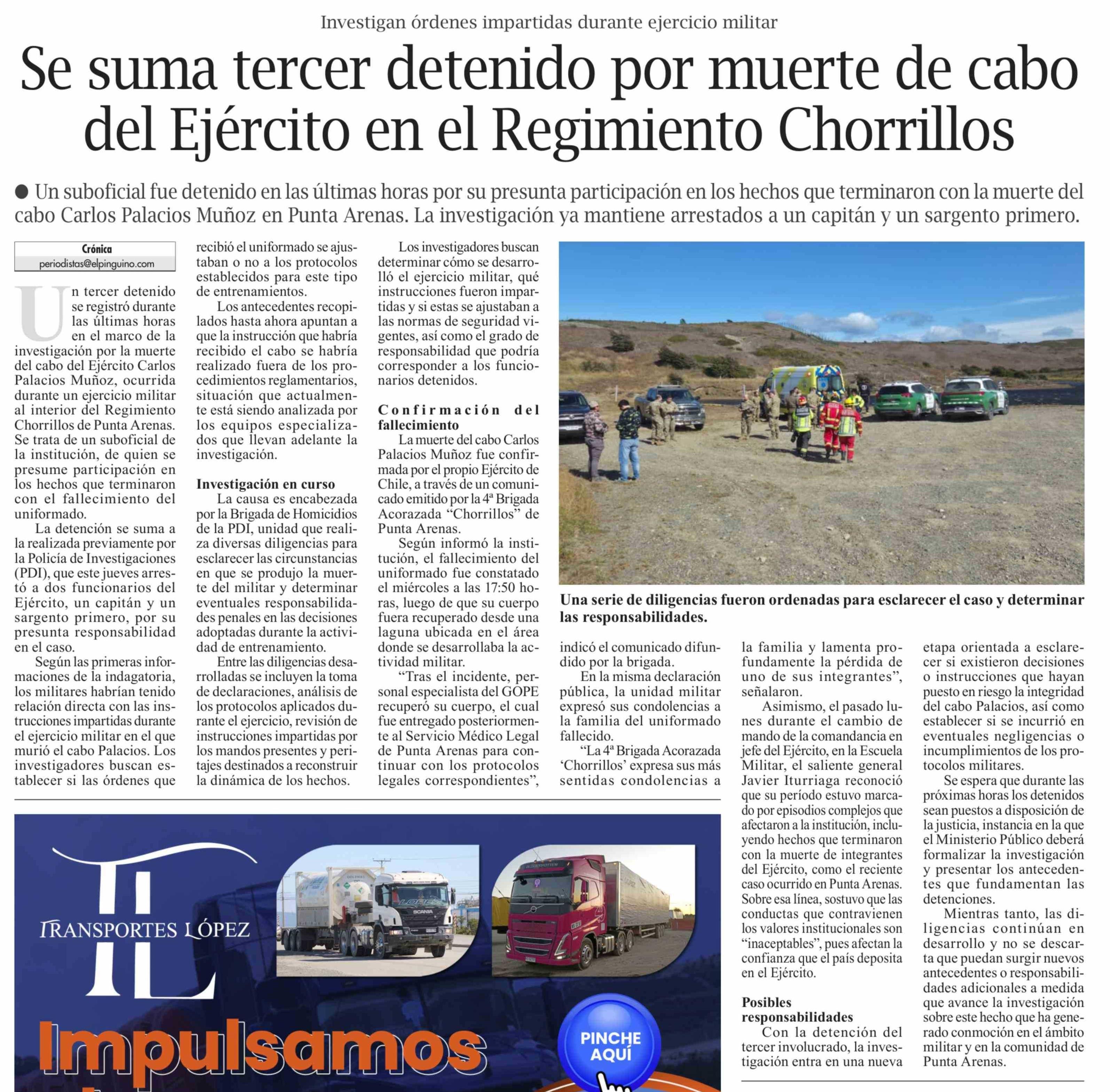 Se suma tercer detenido por muerte de cabo del Ejército en el Regimiento Chorrillos