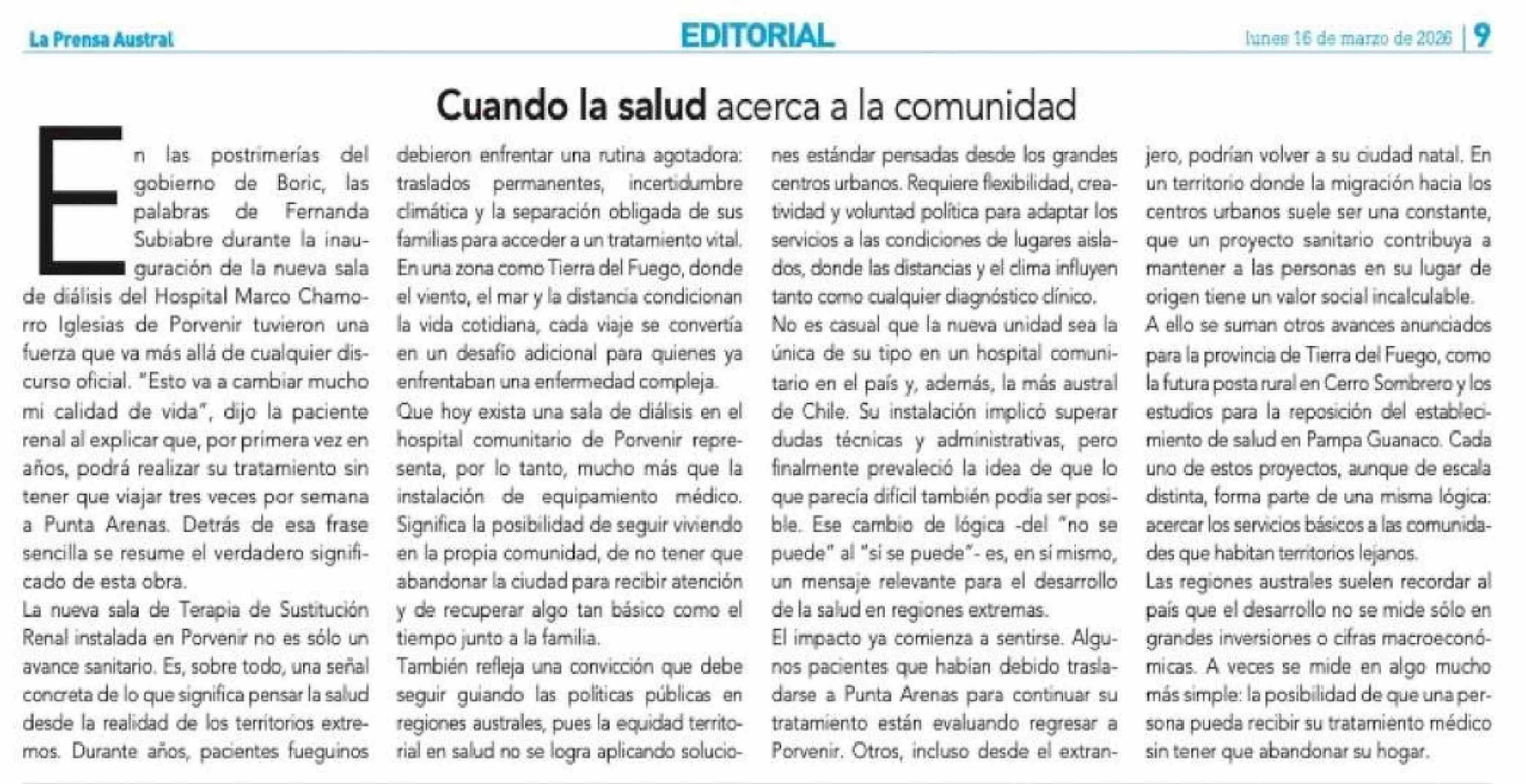 Fecha: 16-03-2026 Sector: Editorial Región: Región de Magallanes y de la Antártica Chilena