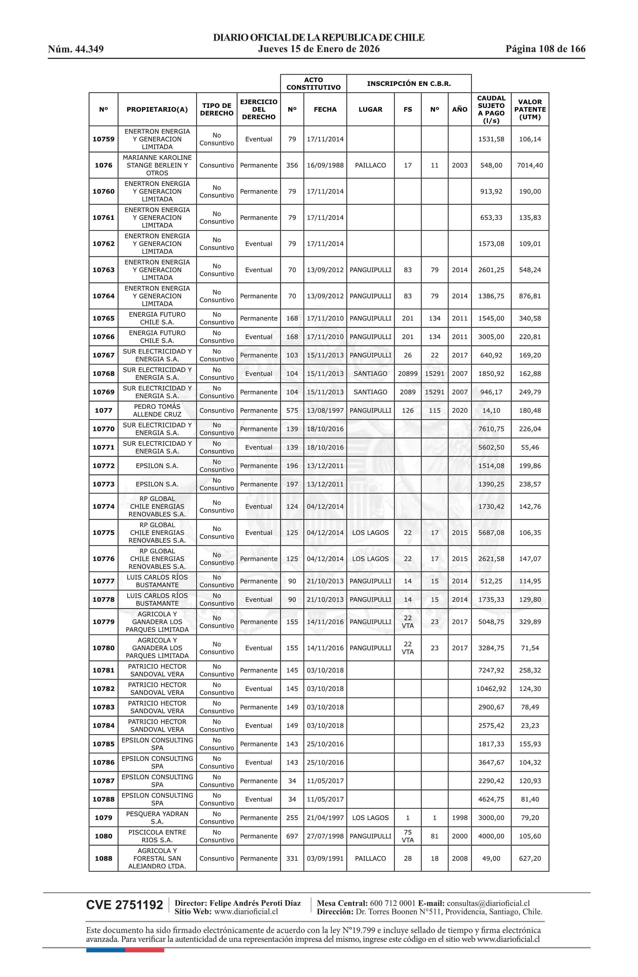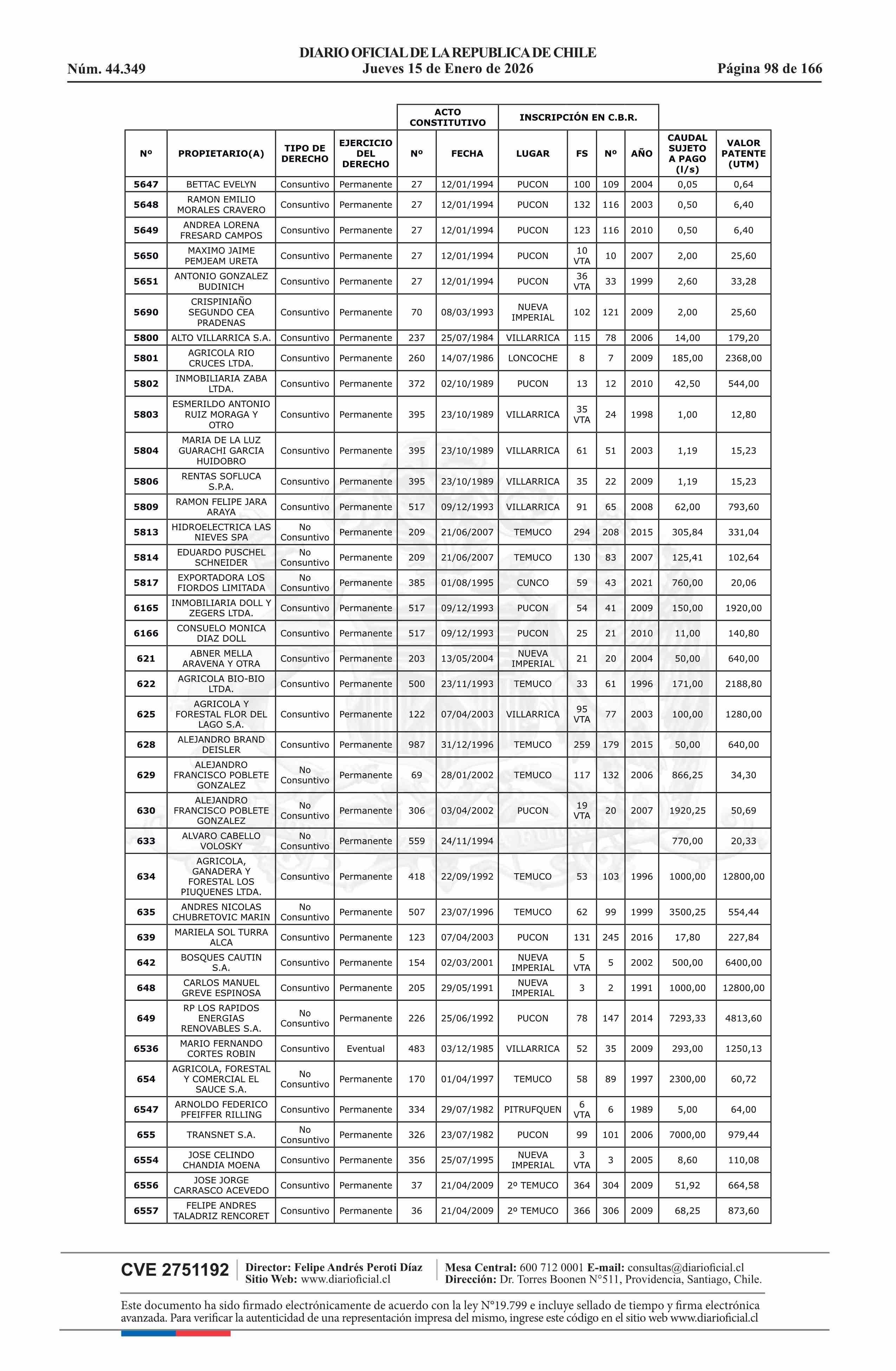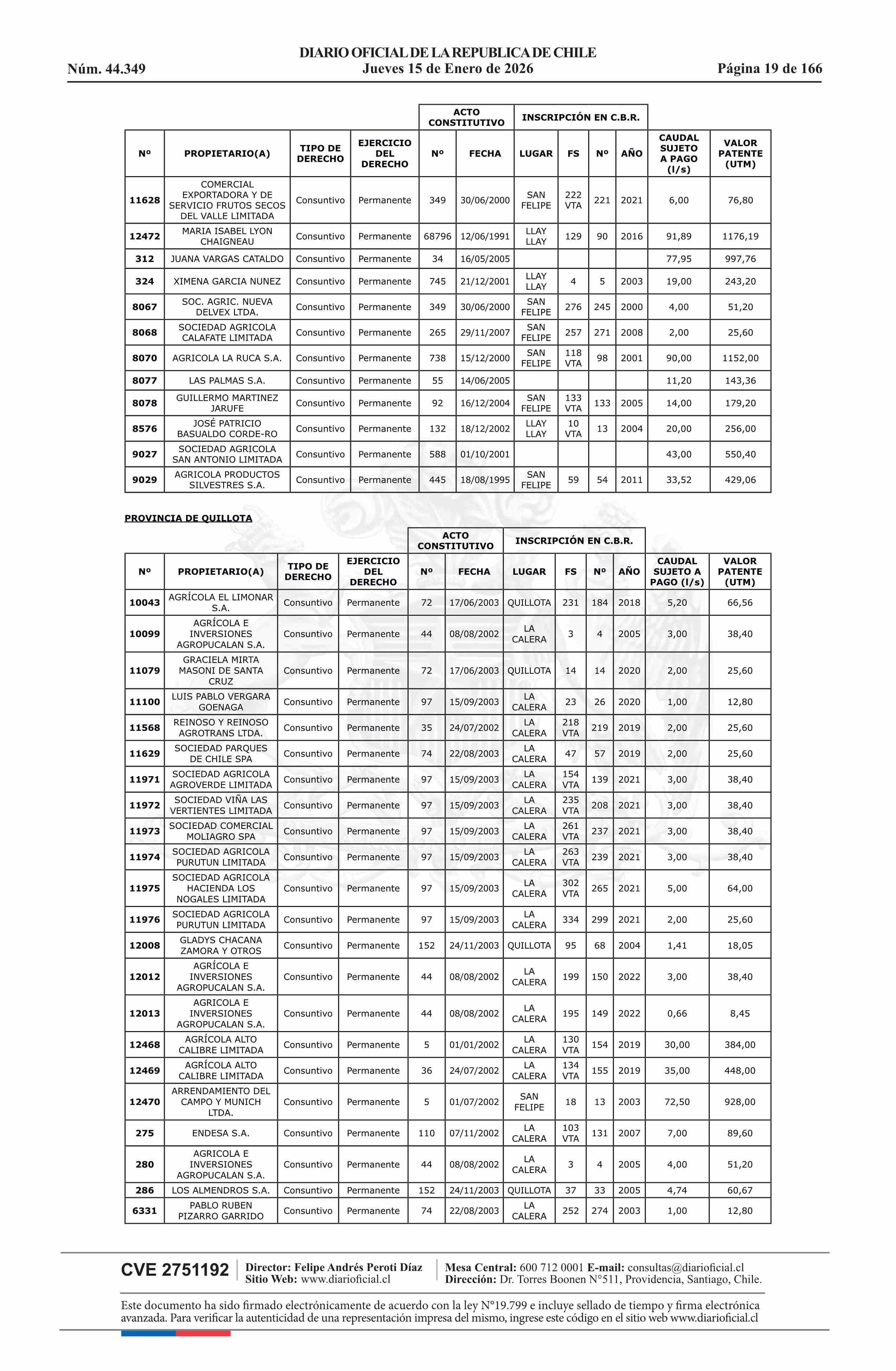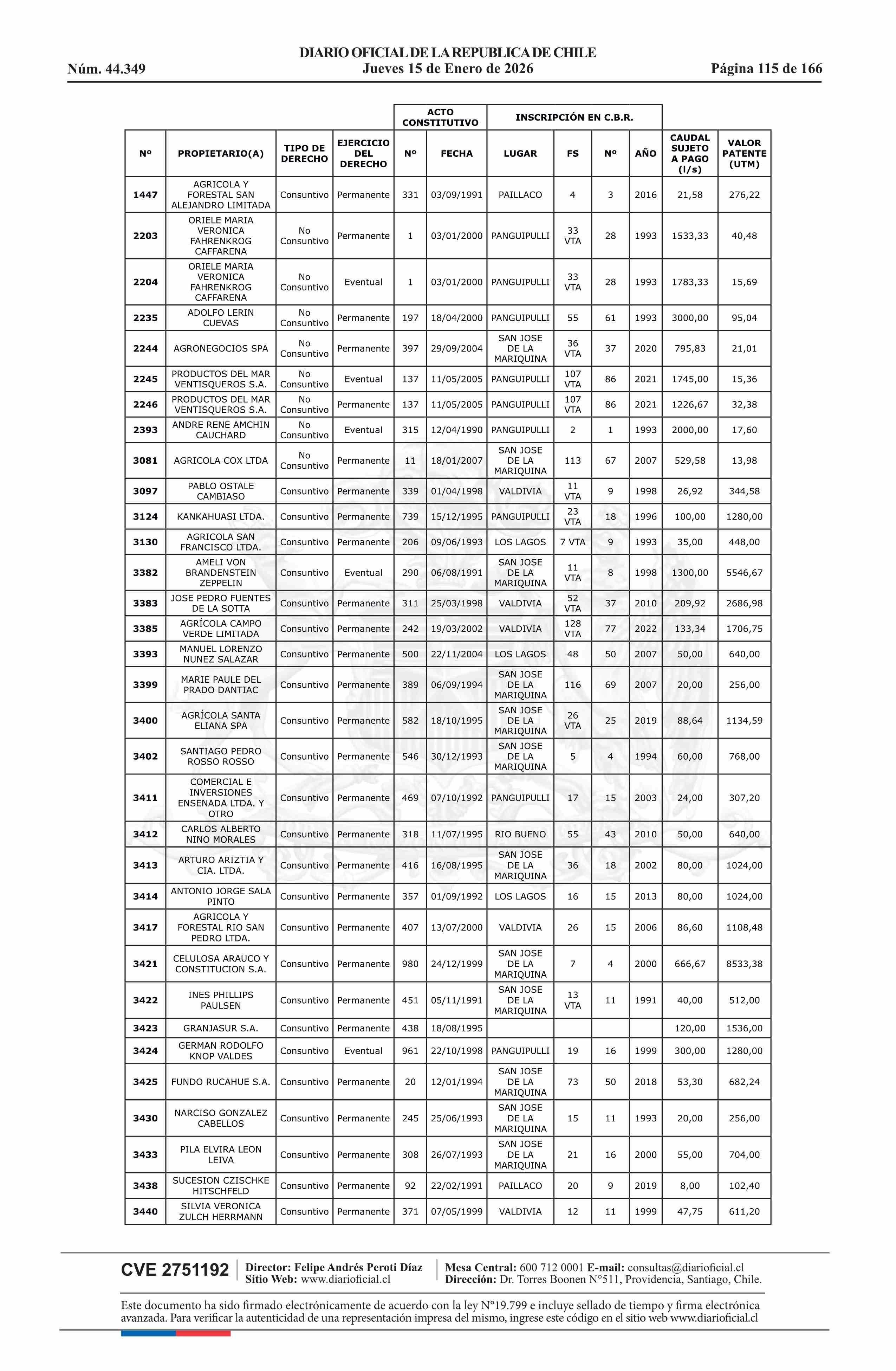 | Título: | Resolución exenta número 5.357, de 2025.- Fija listado de derechos de aprovechamiento de aguas afectos al pago de patente a beneficio fiscal por no utilización de las aguas, proceso 2026 |