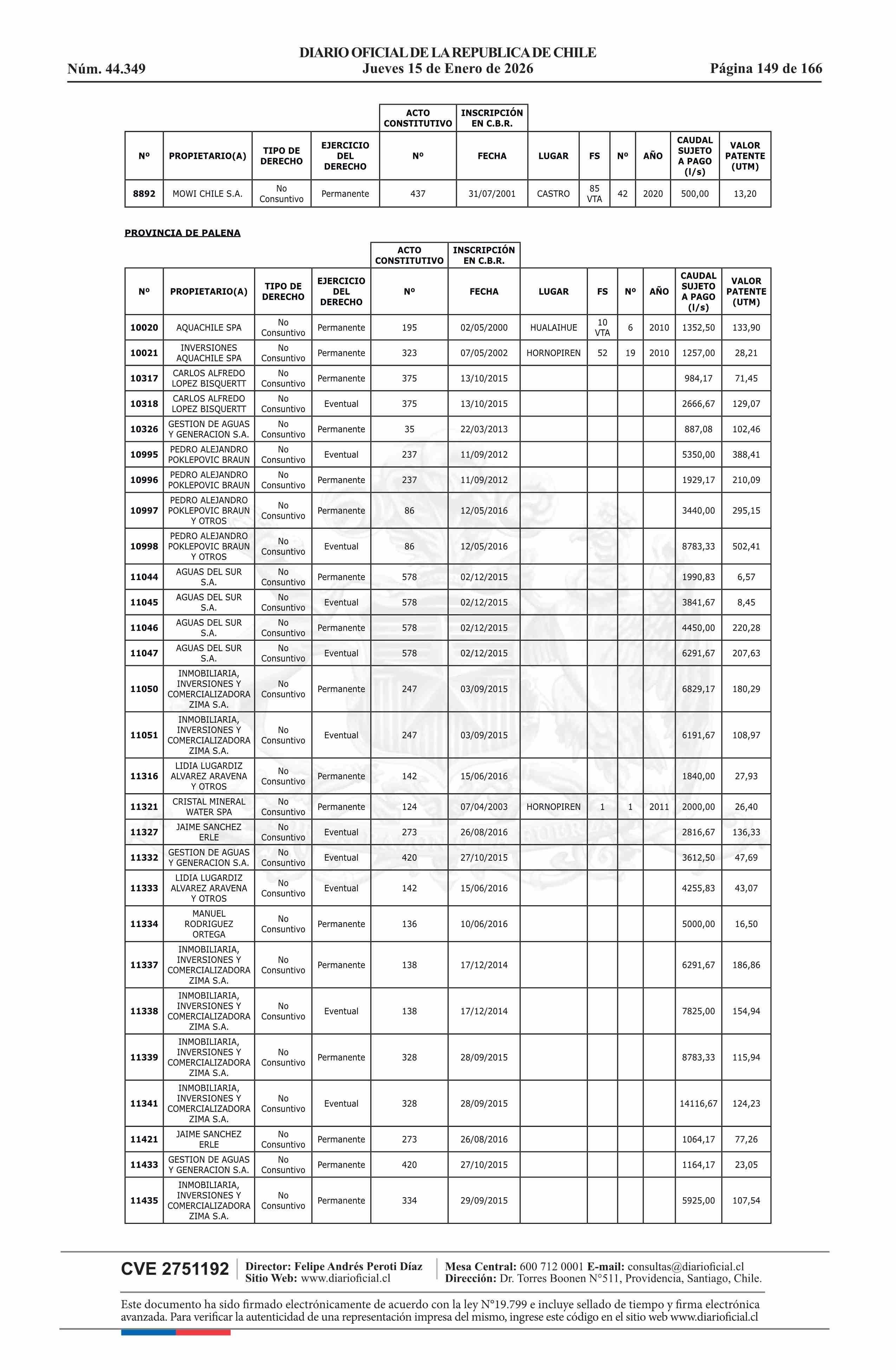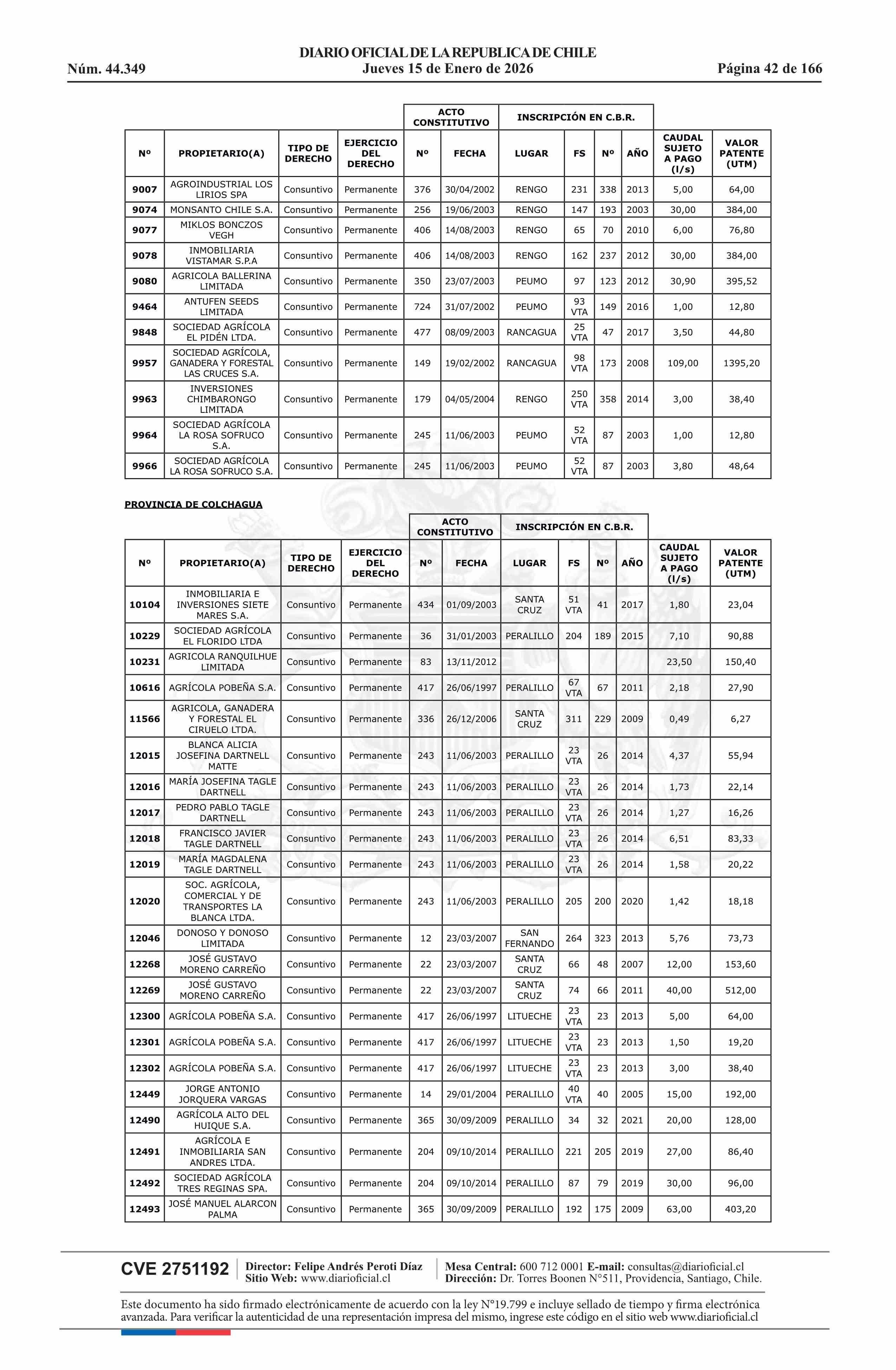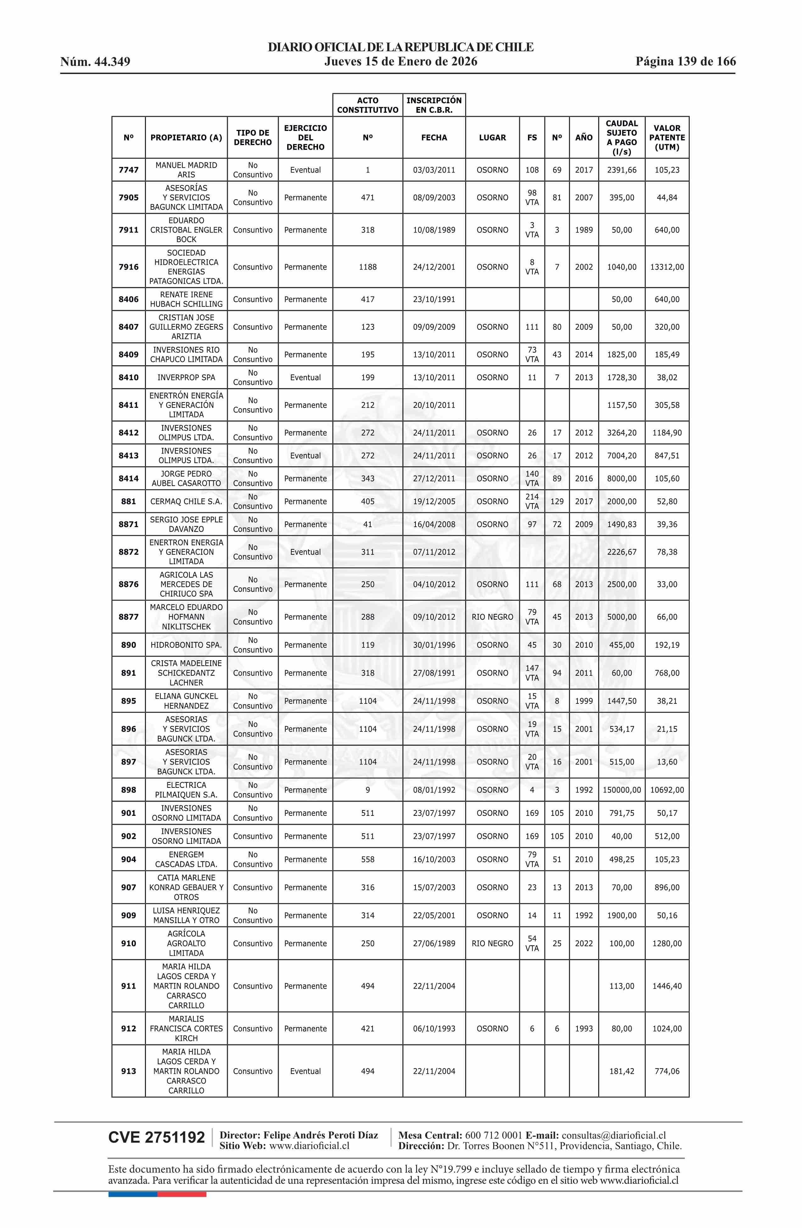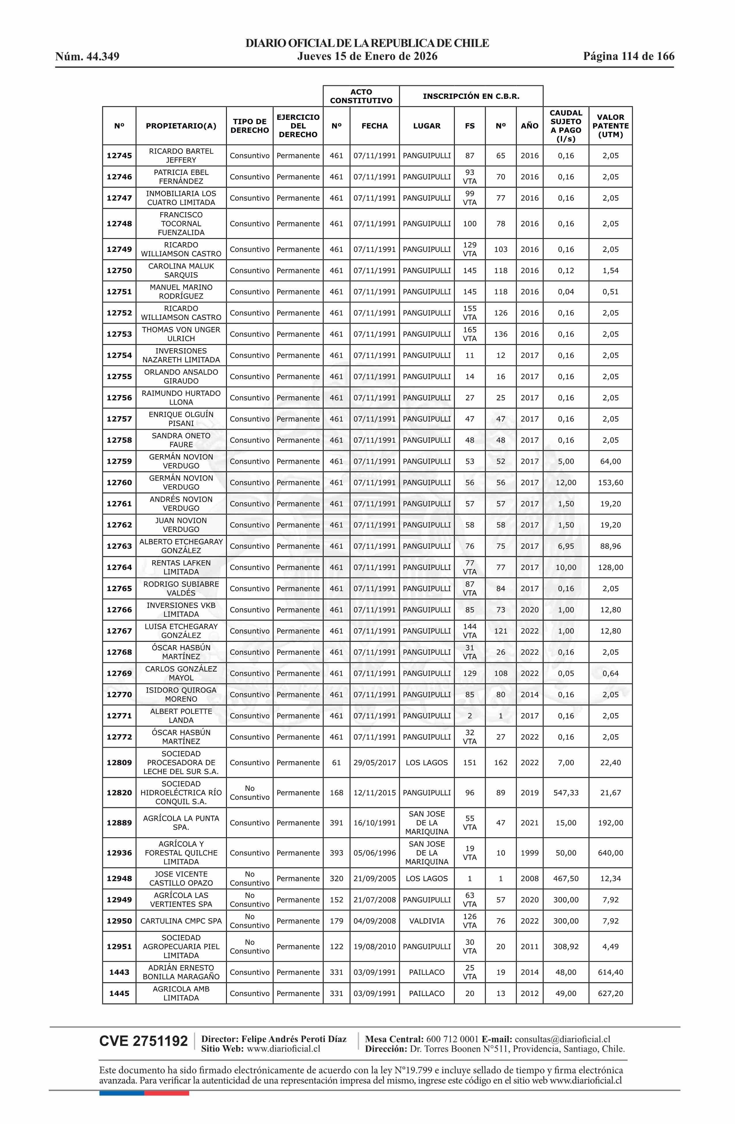 | Título: | Resolución exenta número 5.357, de 2025.- Fija listado de derechos de aprovechamiento de aguas afectos al pago de patente a beneficio fiscal por no utilización de las aguas, proceso 2026 |