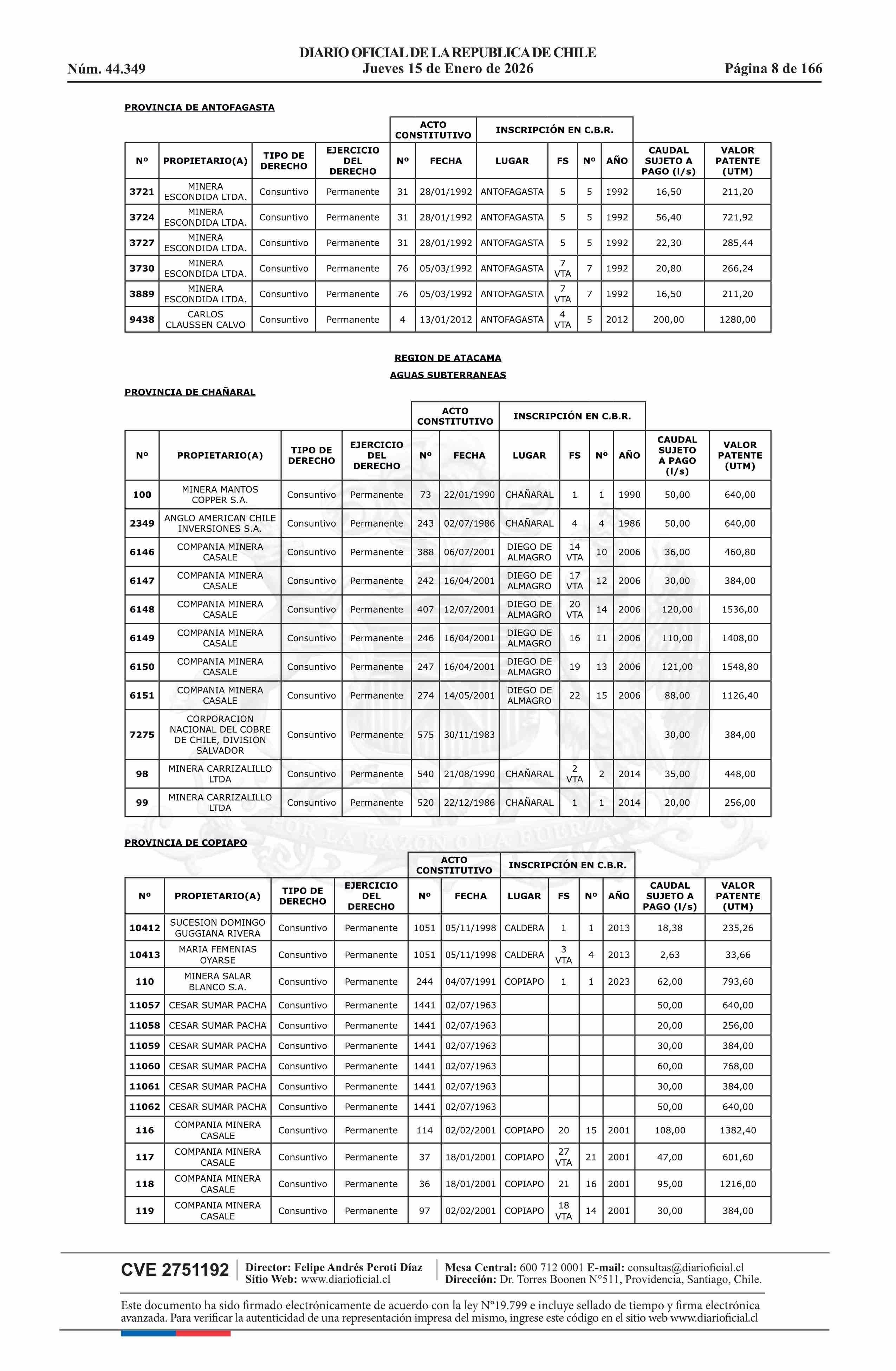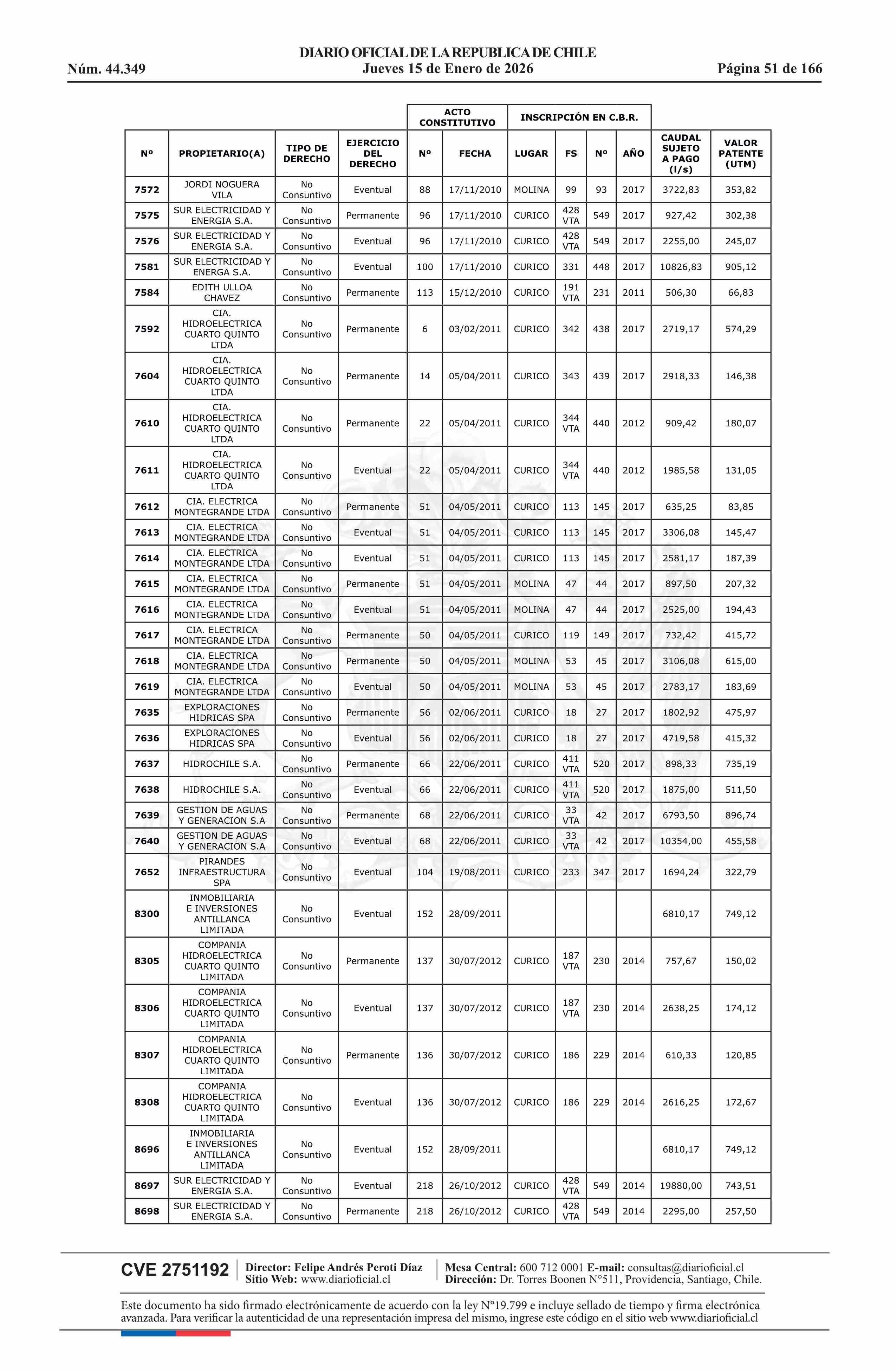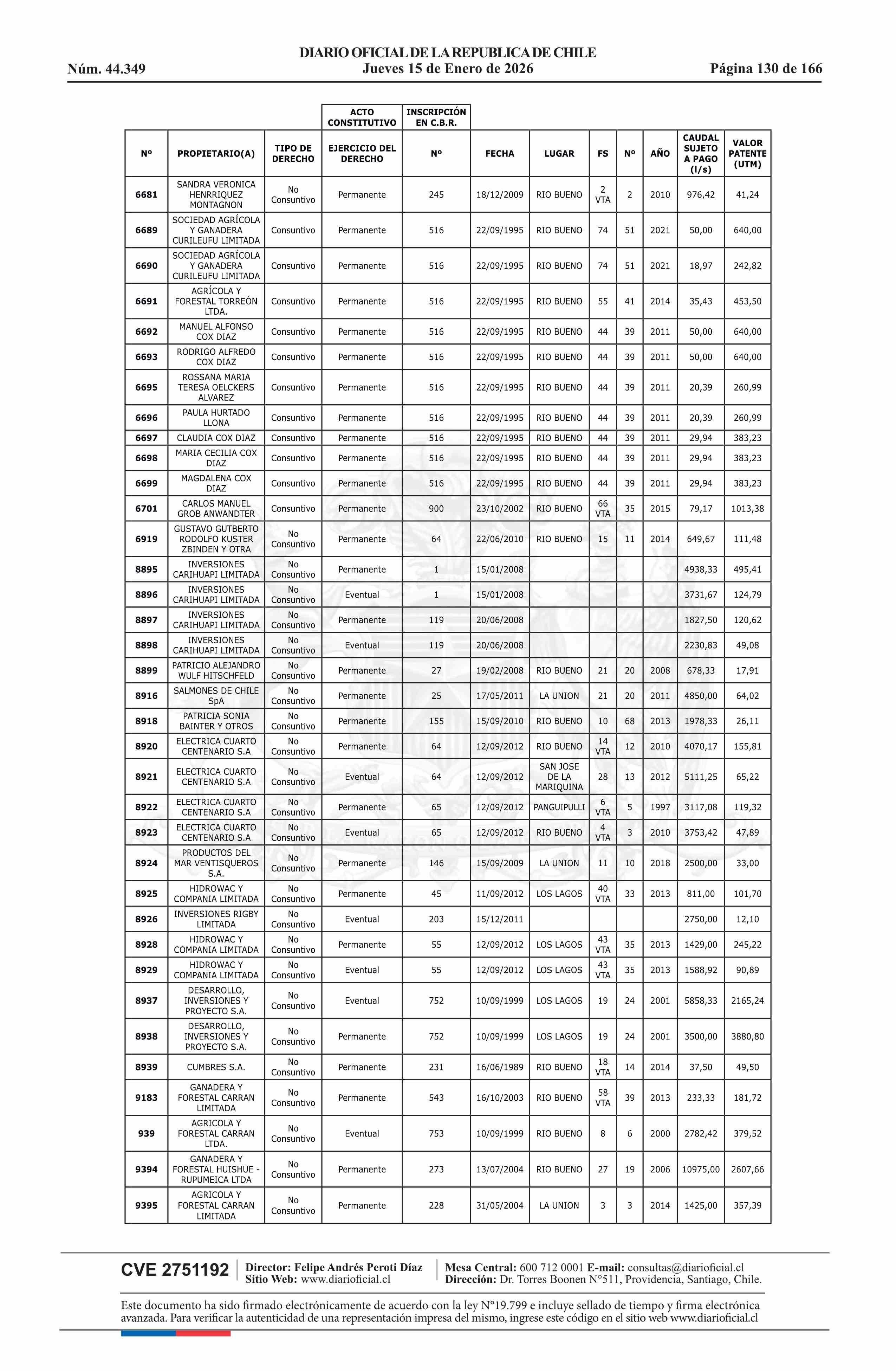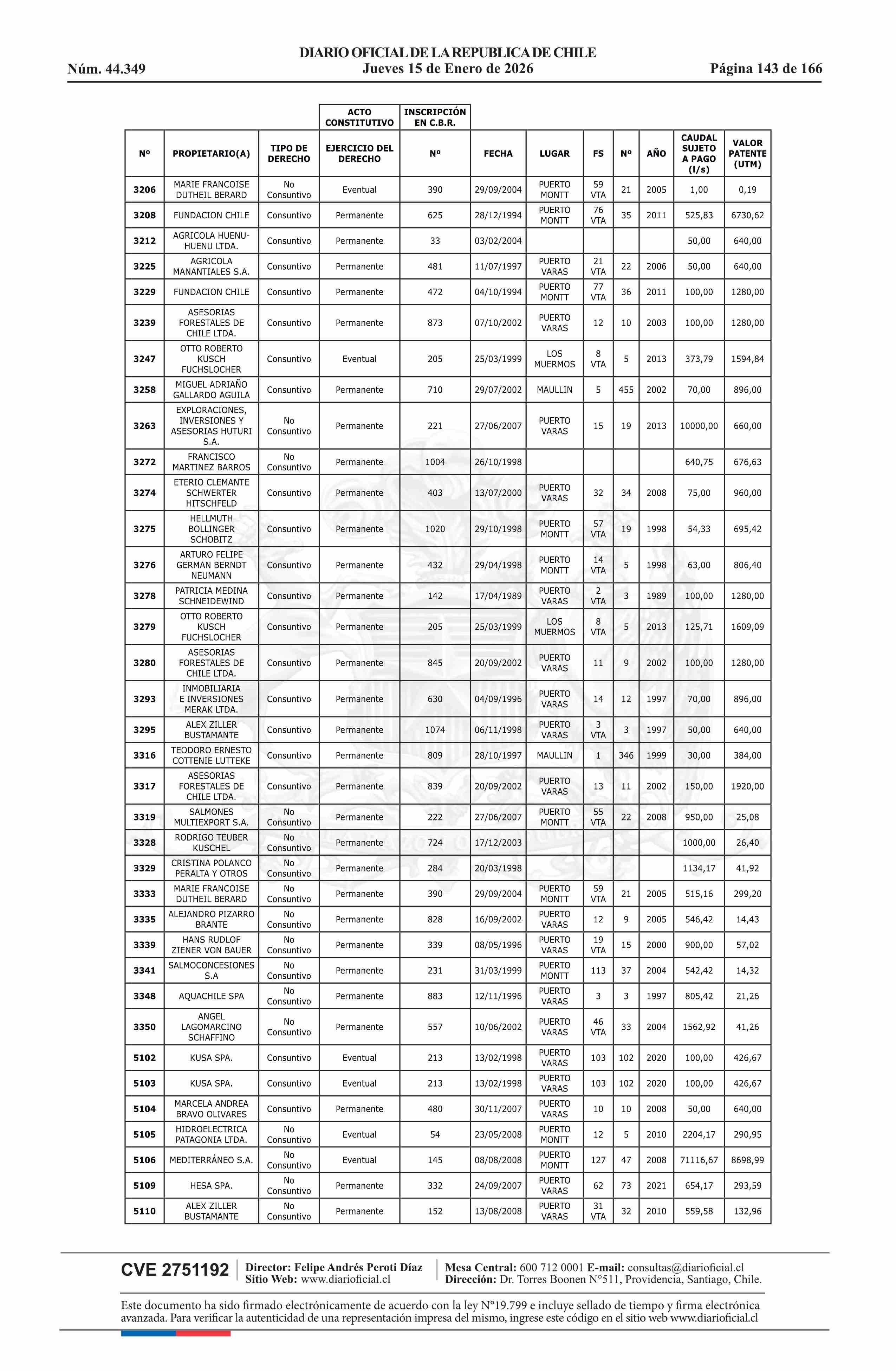 | Fuente: | Diario Oficial Edición Electrónica (Diario Oficial de Chile - 5 Empresas Y Cooper) | Página(s): | 30-180 |