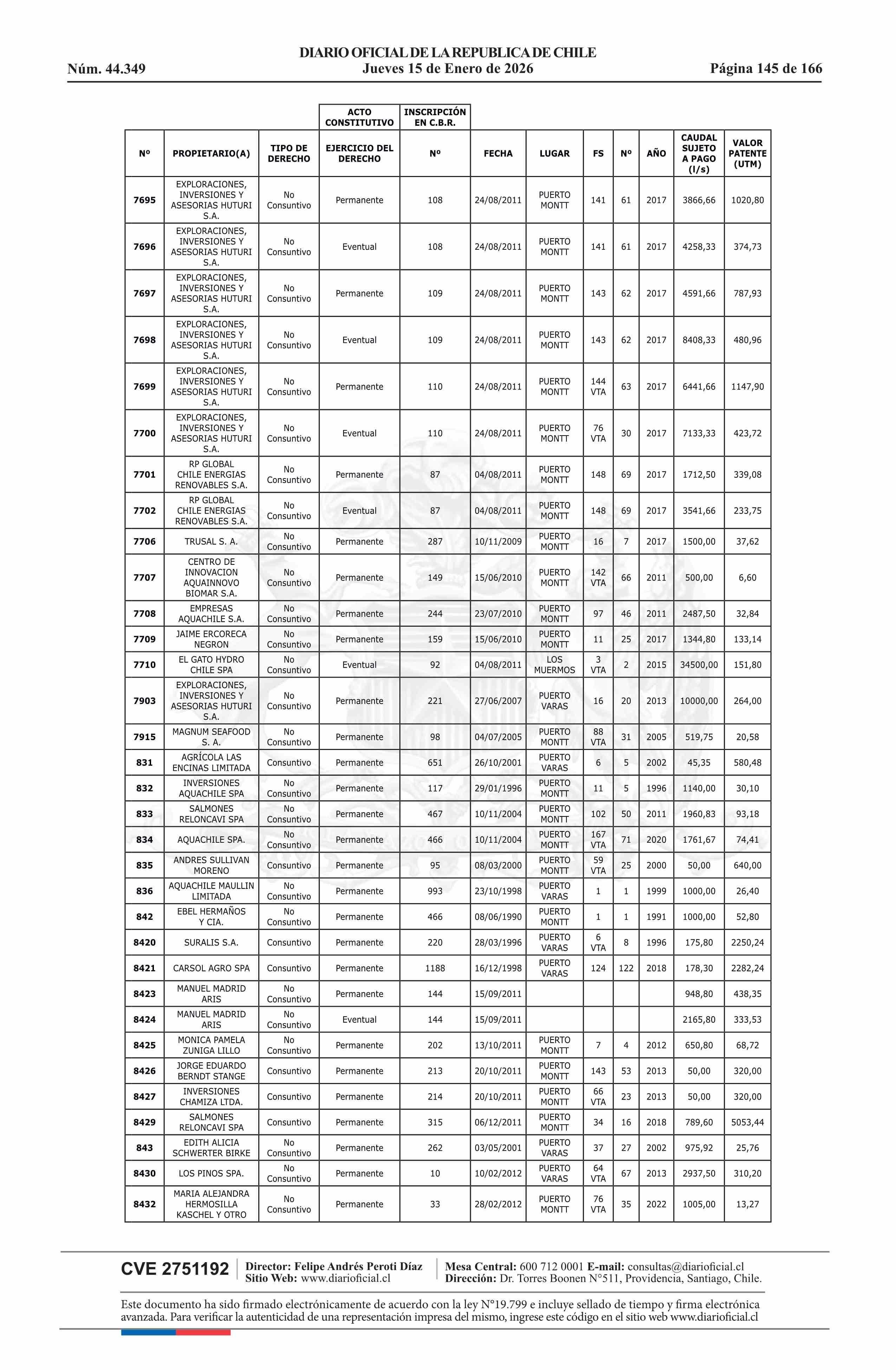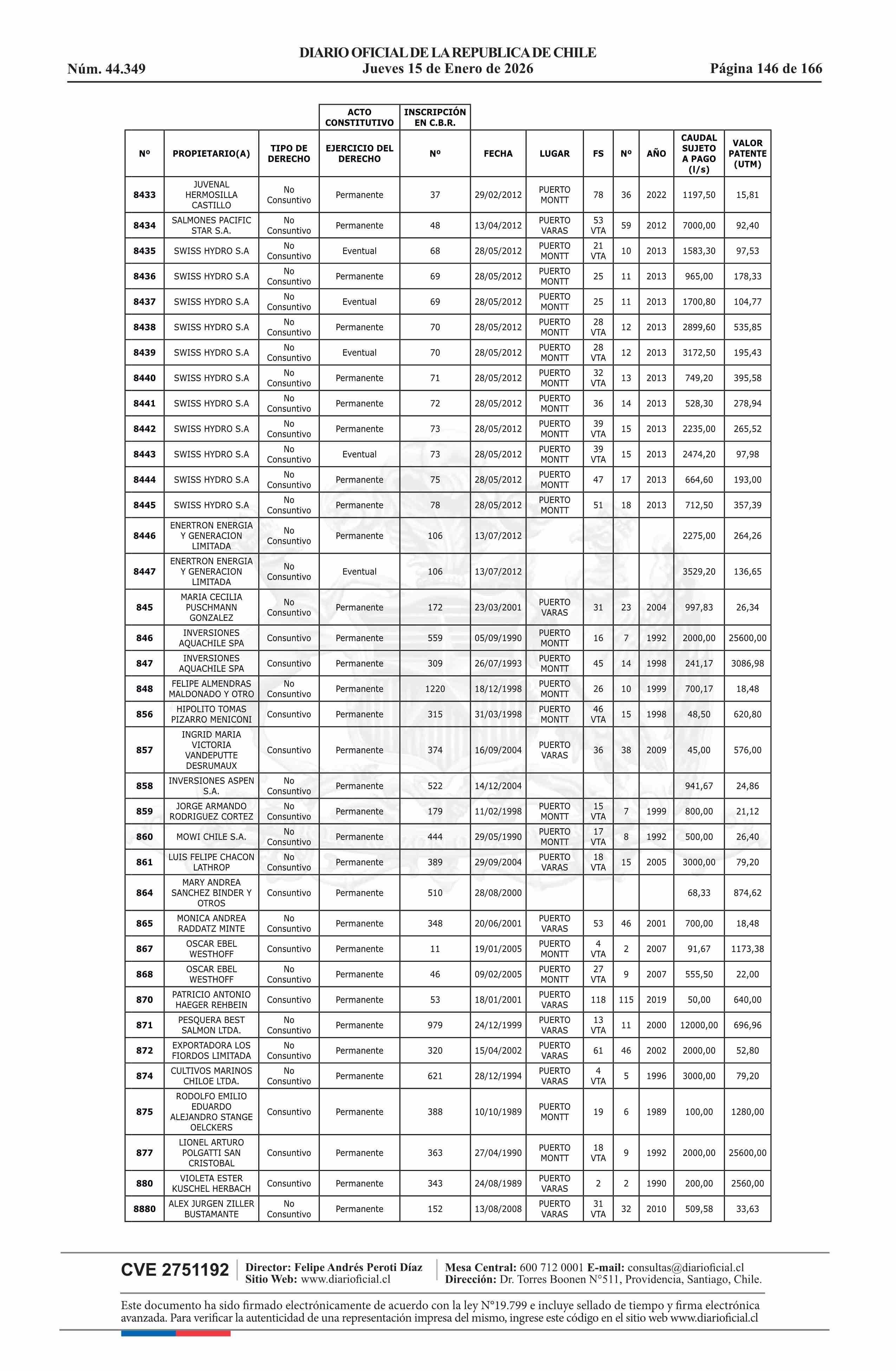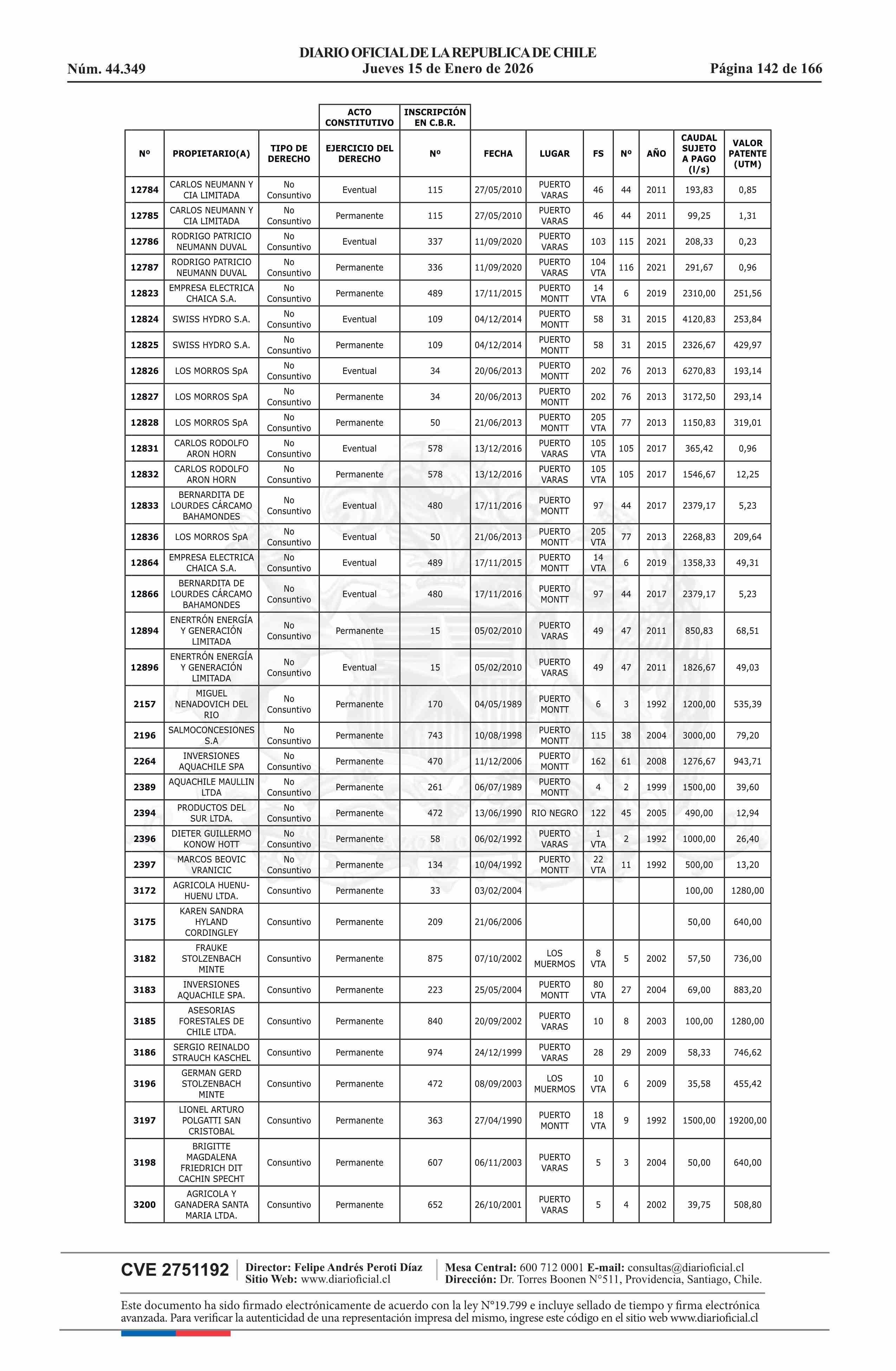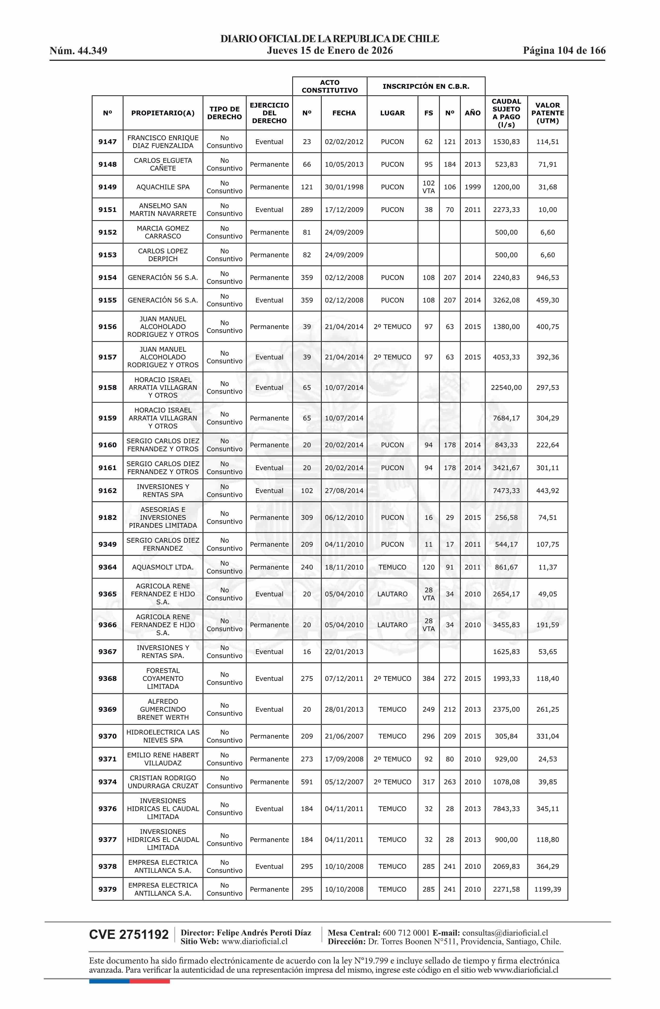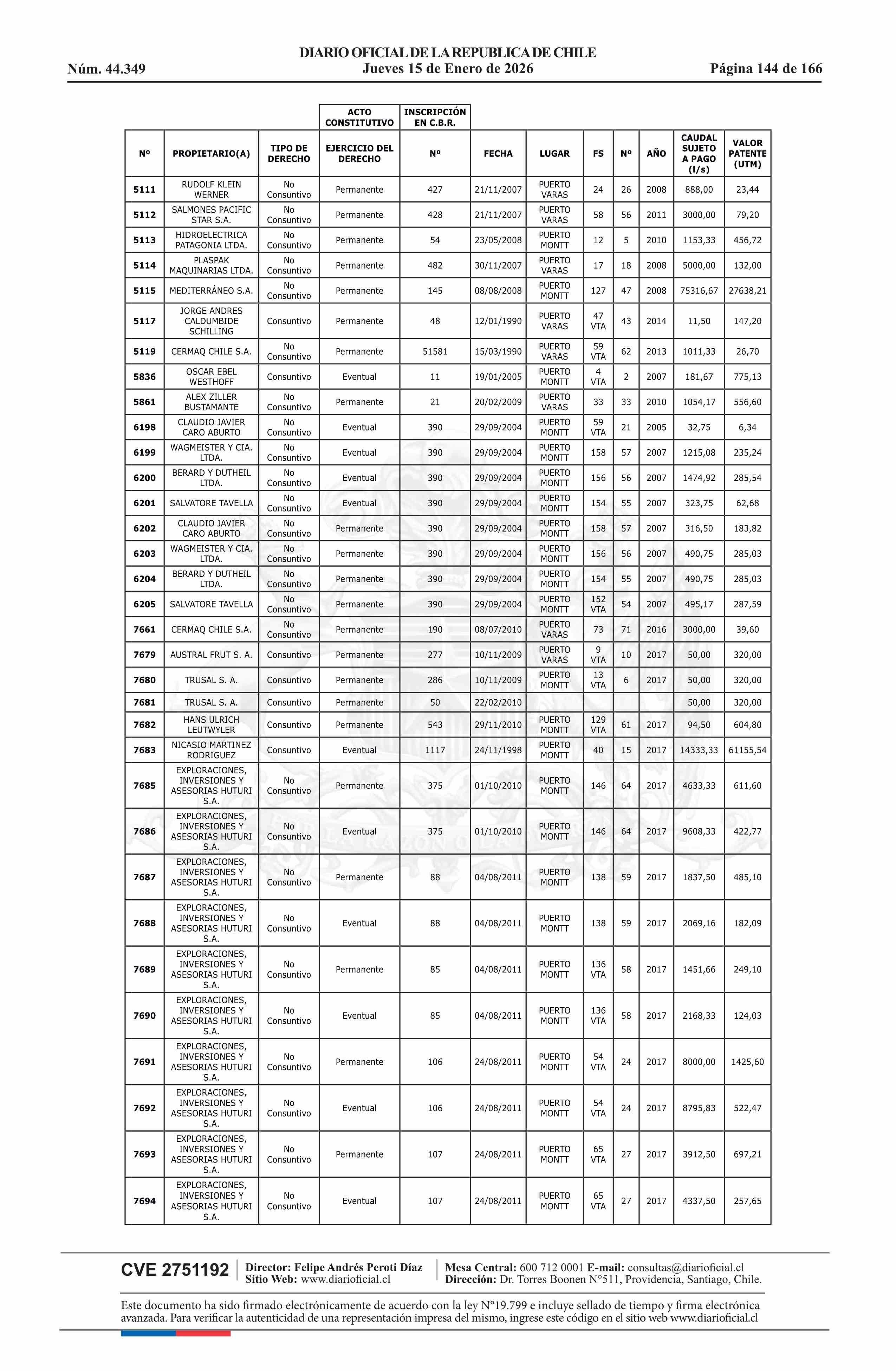 | Fuente: | Diario Oficial Edición Electrónica (Diario Oficial de Chile - 5 Empresas Y Cooper) | Página(s): | 30-180 |