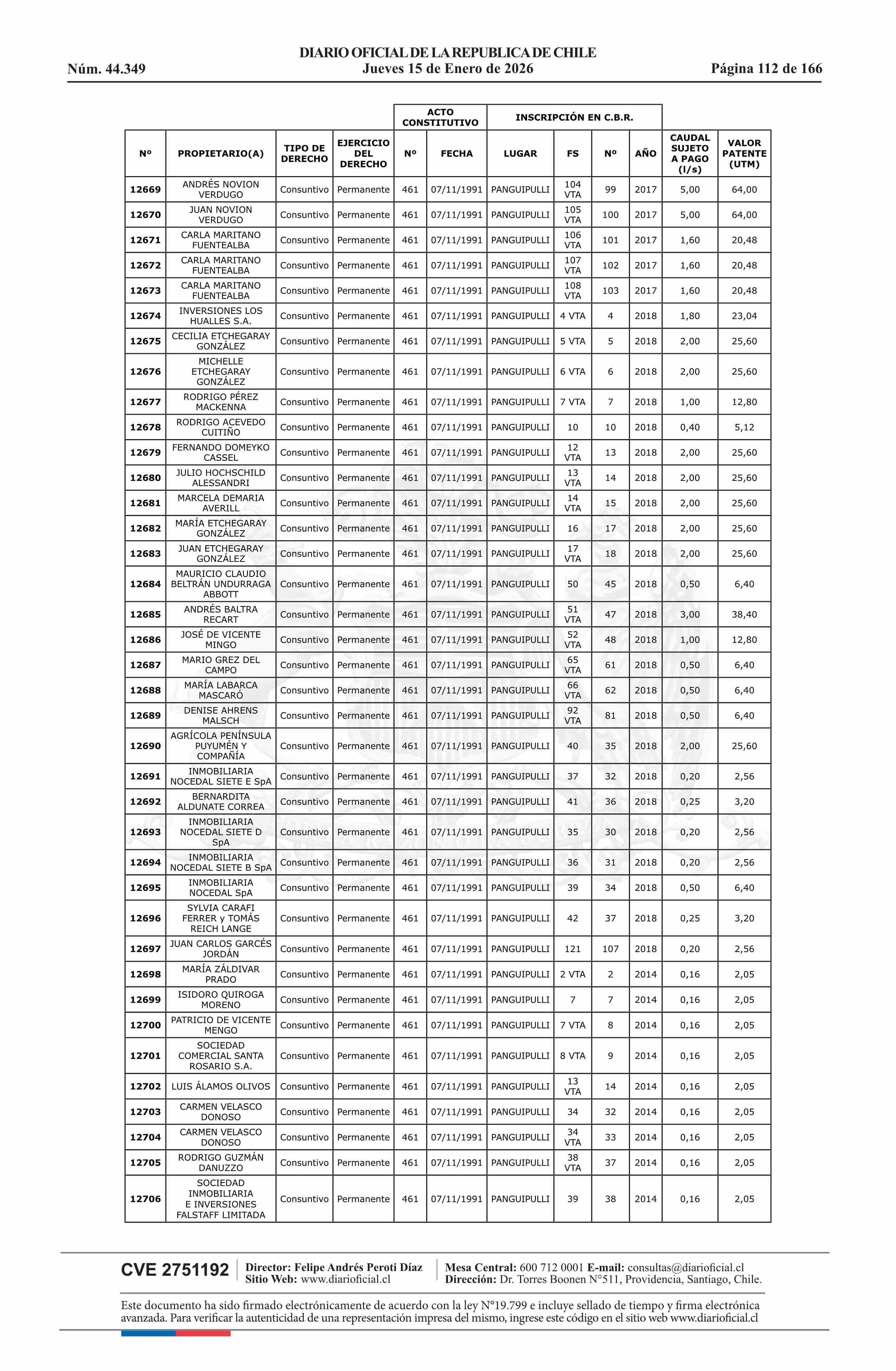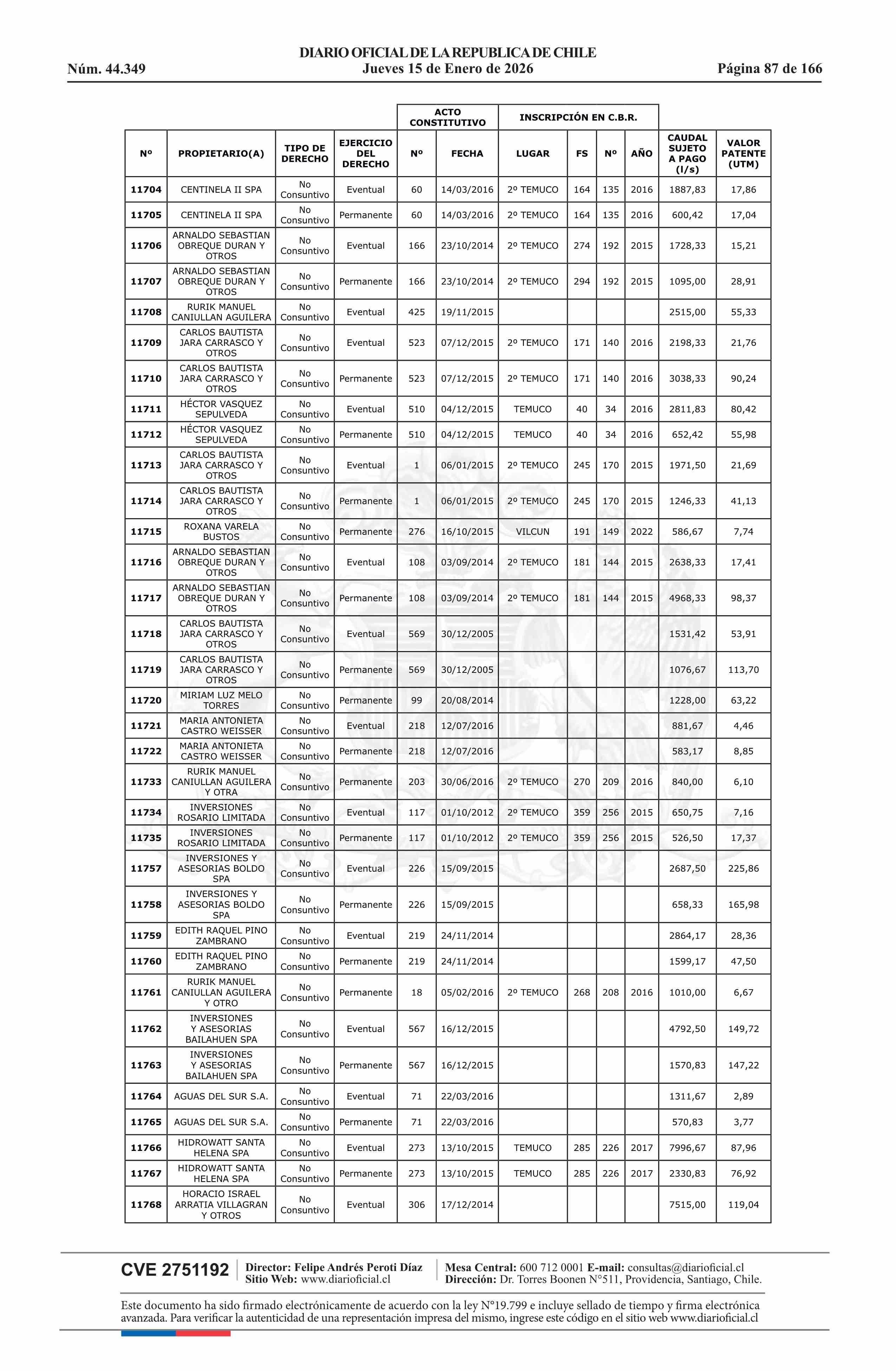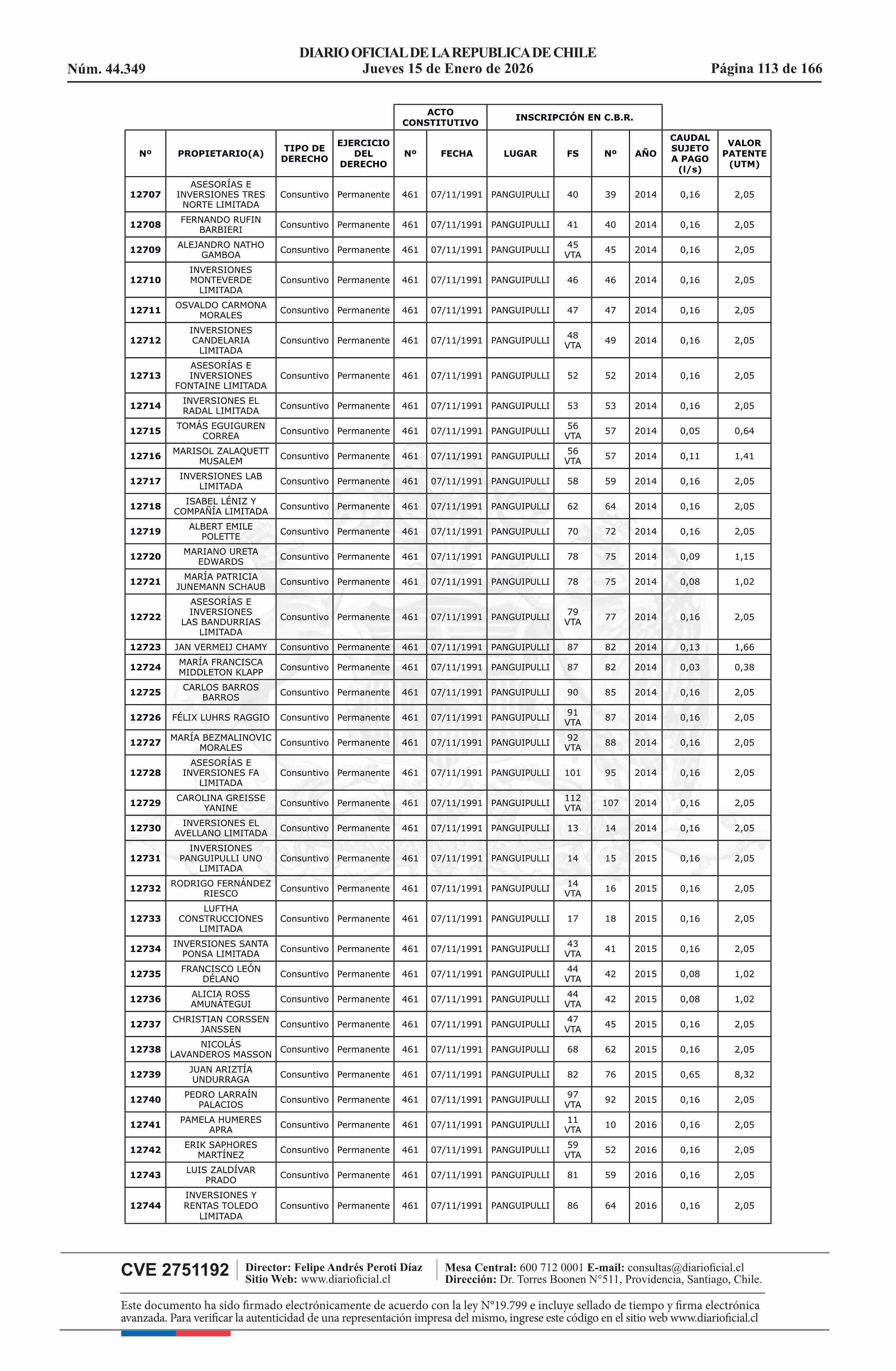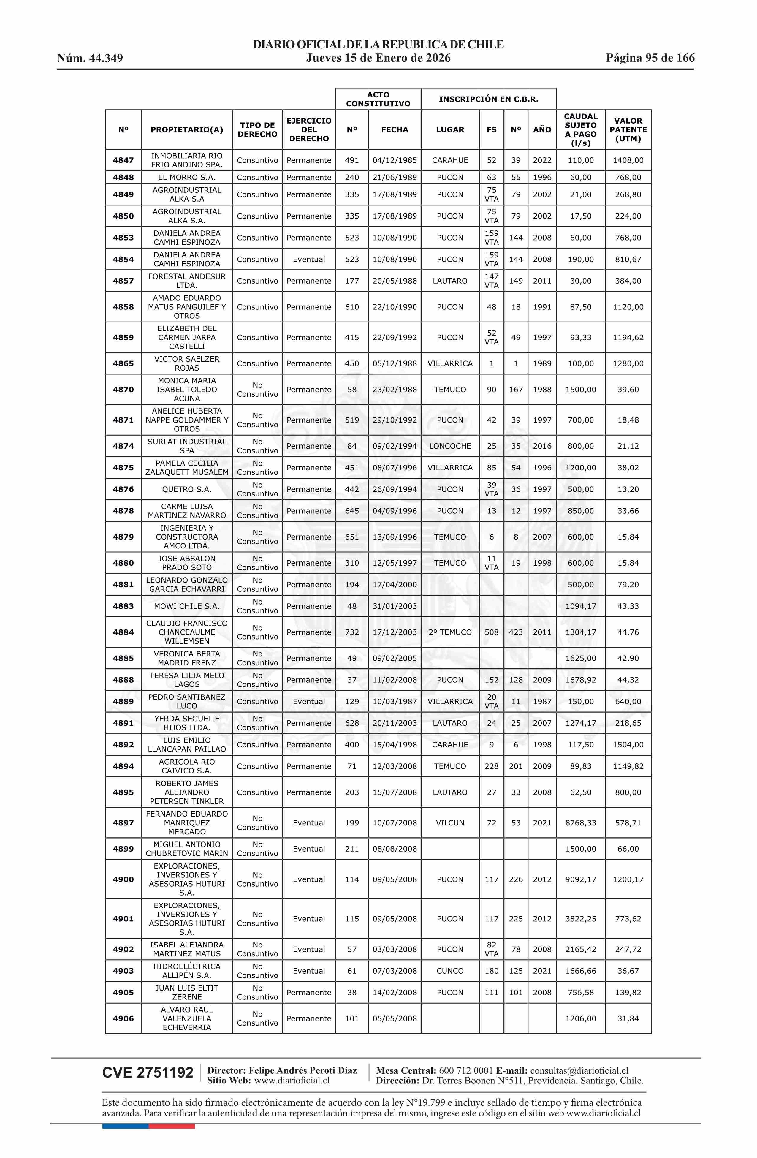 | Fuente: | Diario Oficial Edición Electrónica (Diario Oficial de Chile - 5 Empresas Y Cooper) | Página(s): | 30-180 |