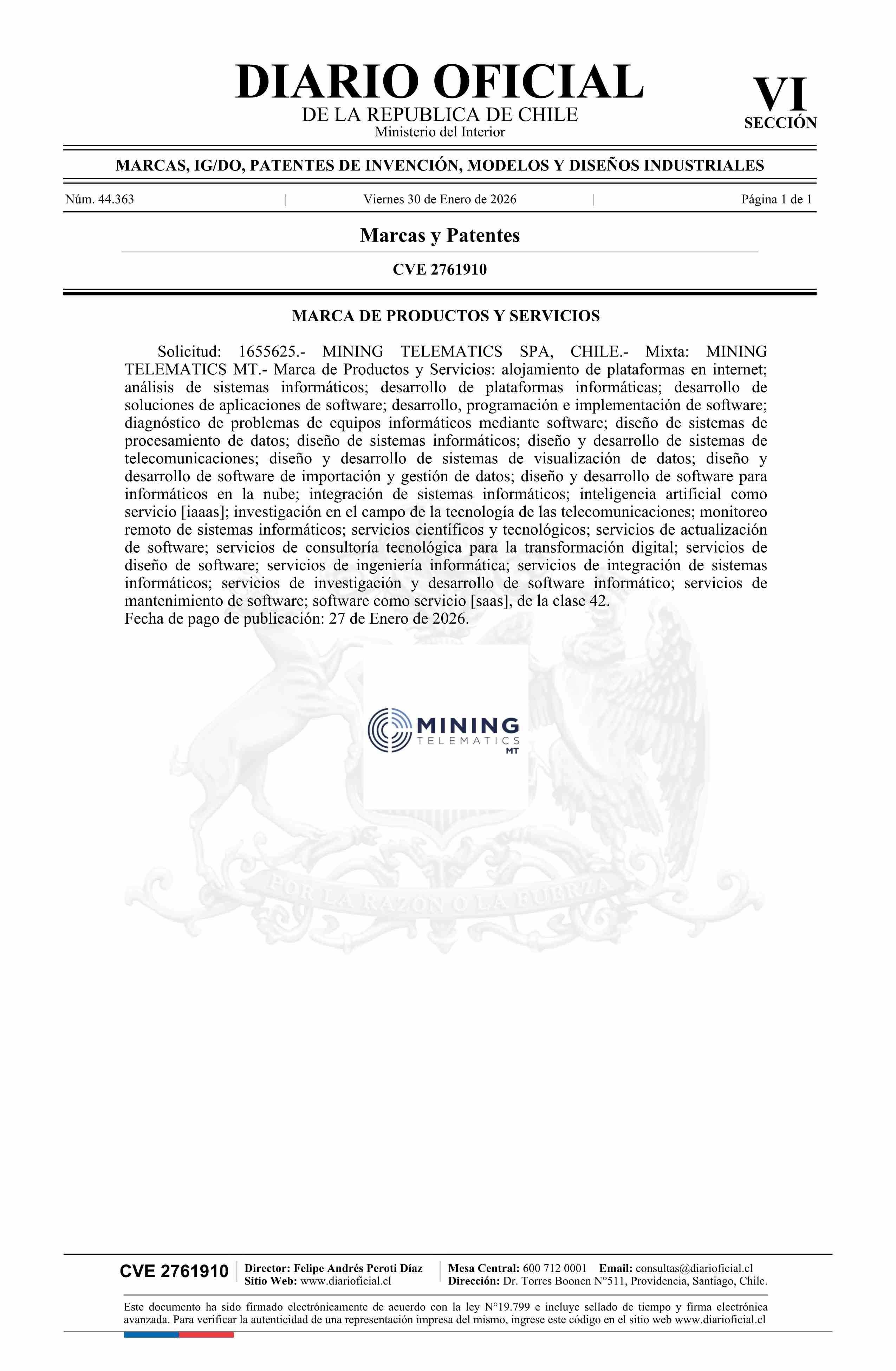 Solicitud número 1655625.- MINING TELEMATICS MT