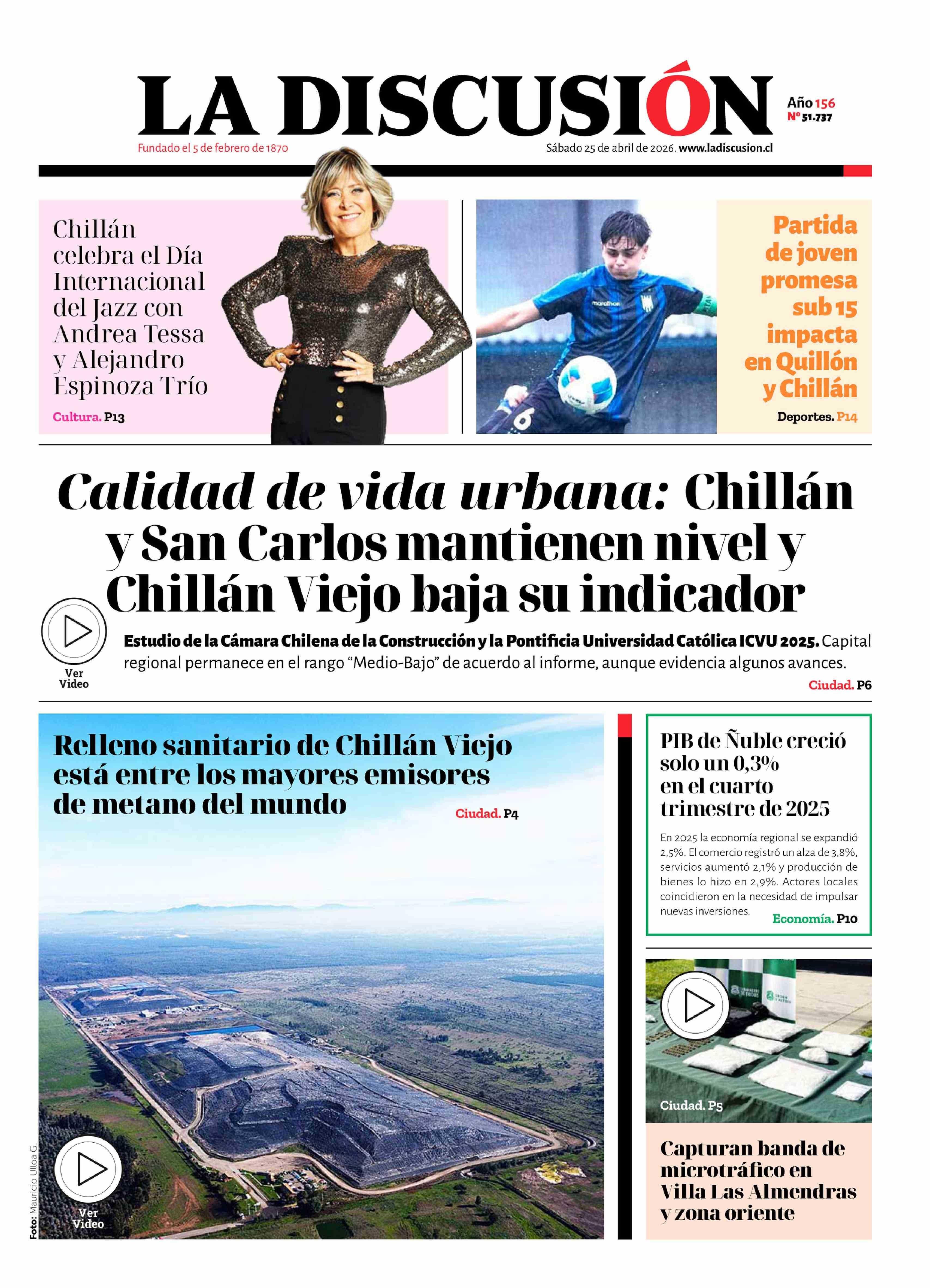 Fecha: 25-04-2026 Sector: Portada Región: Región del Ñuble