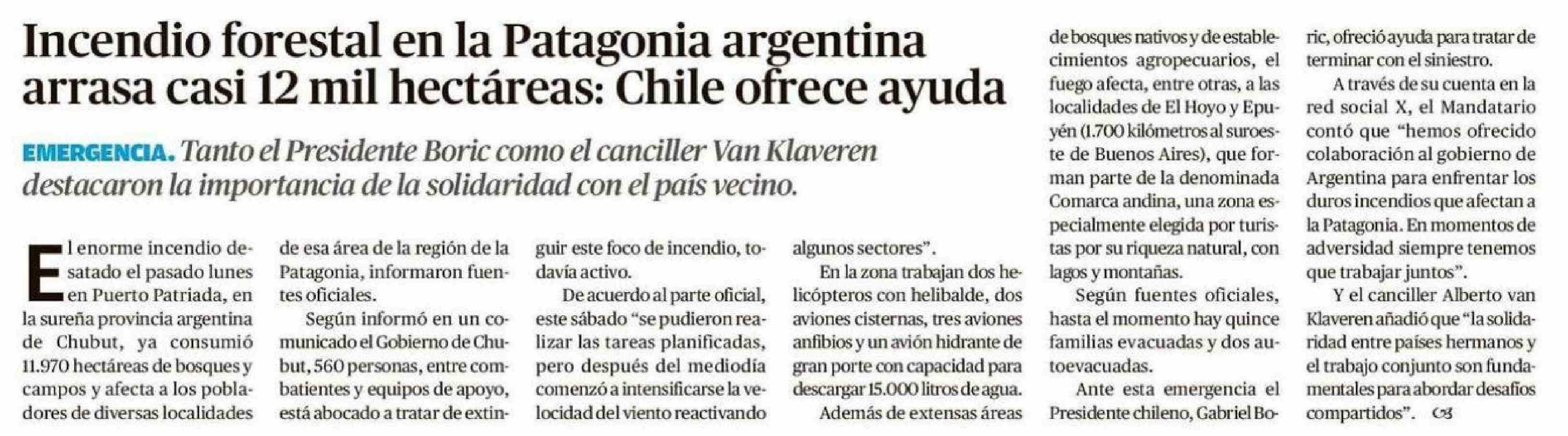 Incendio forestal en la Patagonia argentina arrasa casi 12 mil hectáreas: Chile ofrece ayuda