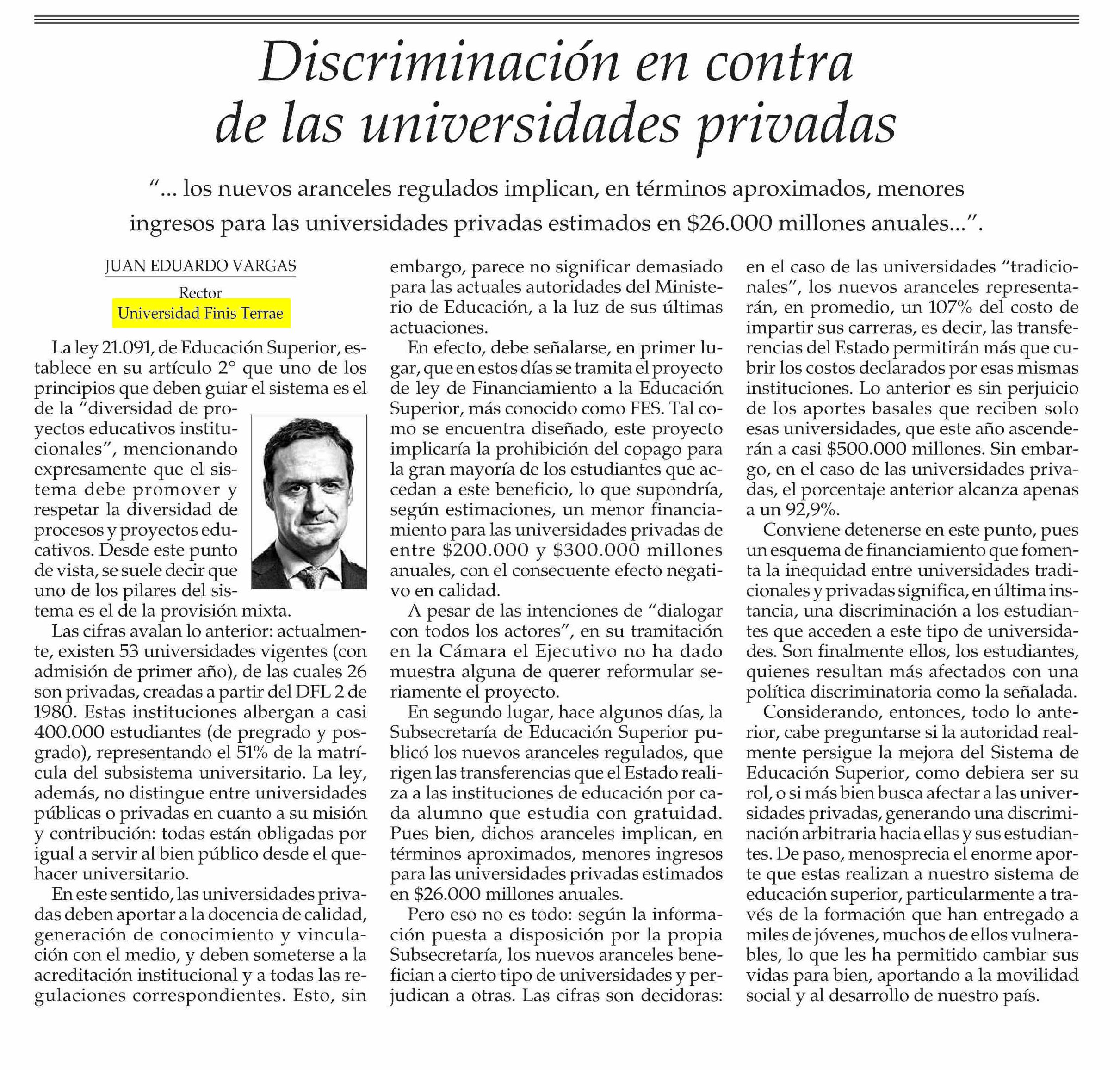 Título: COLUMNAS DE OPINIÓN: Discriminación en contra de las universidades privadas