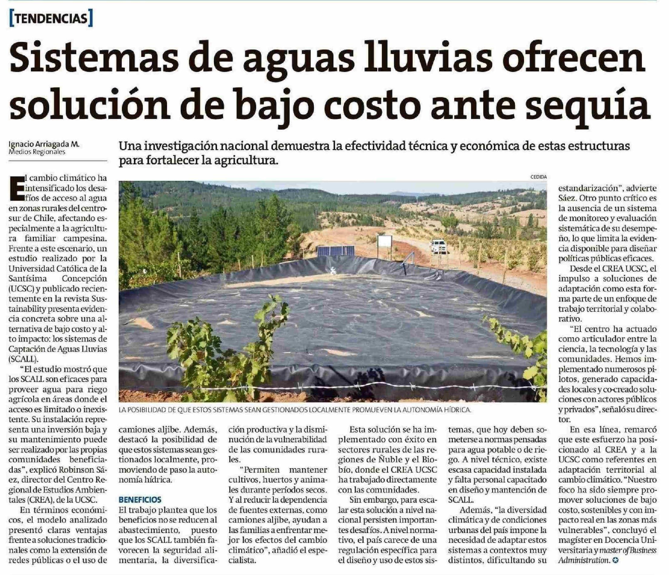 Sistemas de aguas lluvias ofrecen solución de bajo costo ante sequía