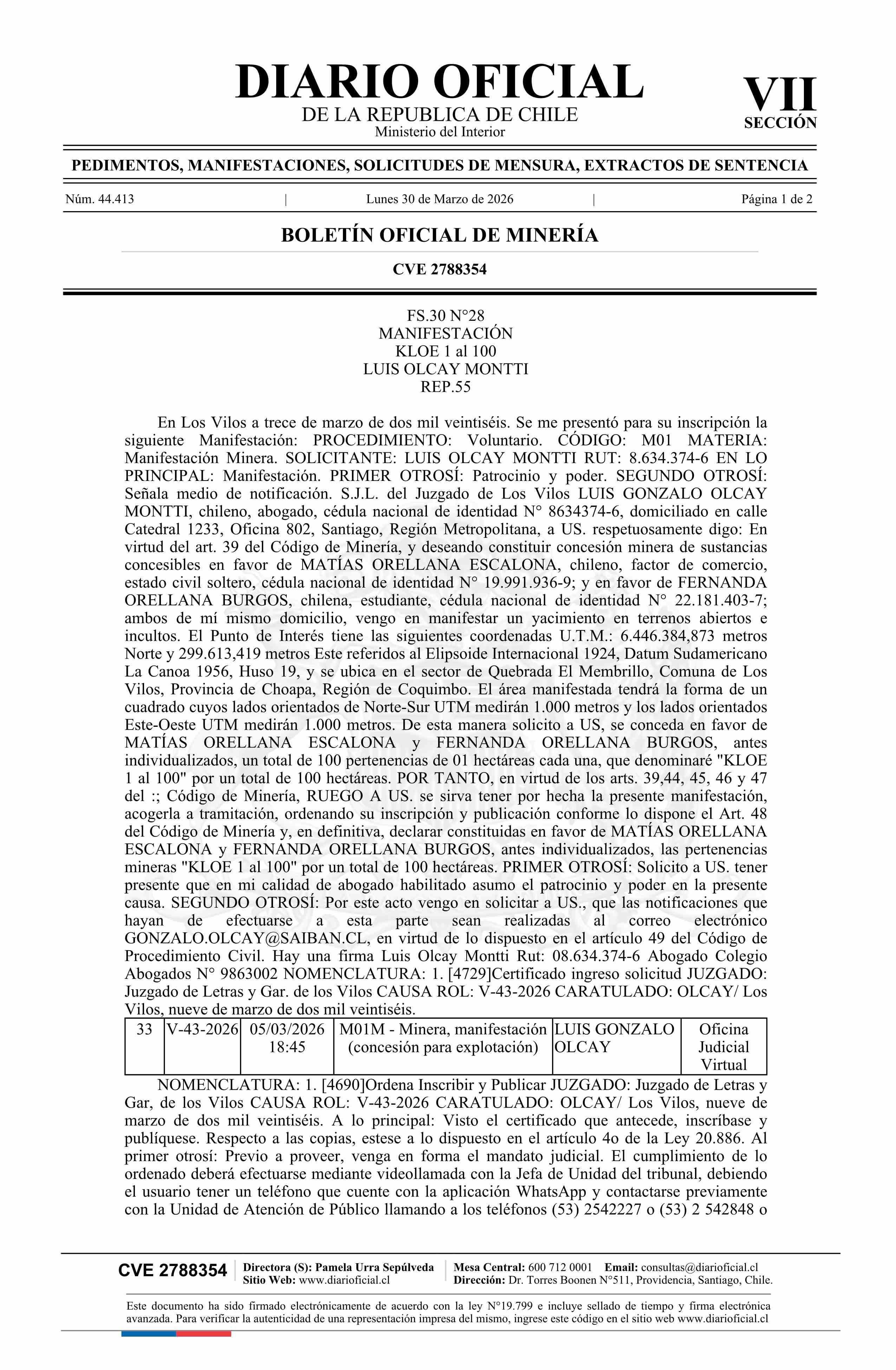 DIARIO OFICIAL CHILE - BOLETÍN OFICIAL DE MINERÍA (DIARIO OFICIAL CHILE – BOM – MANIFESTACIONES MIN)