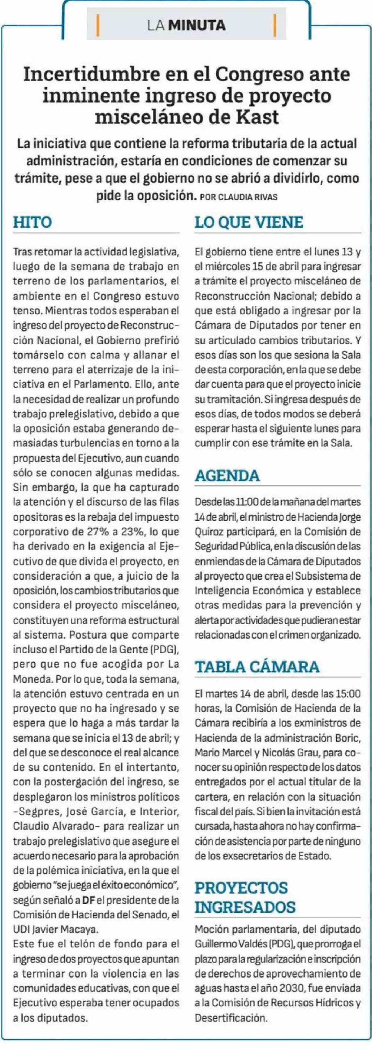 Incertidumbre en el Congreso ante inminente ingreso de proyecto misceláneo de Kast