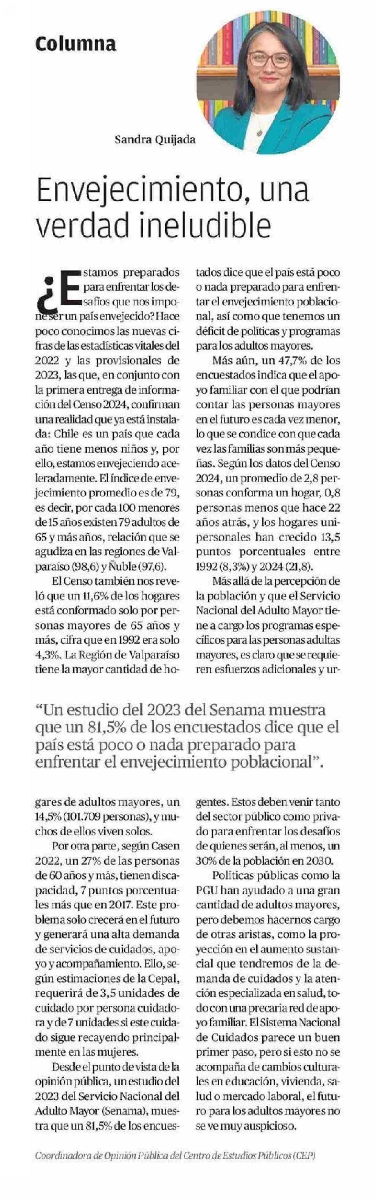 COLUMNAS DE OPINIÓN: Envejecimiento, una verdad ineludible