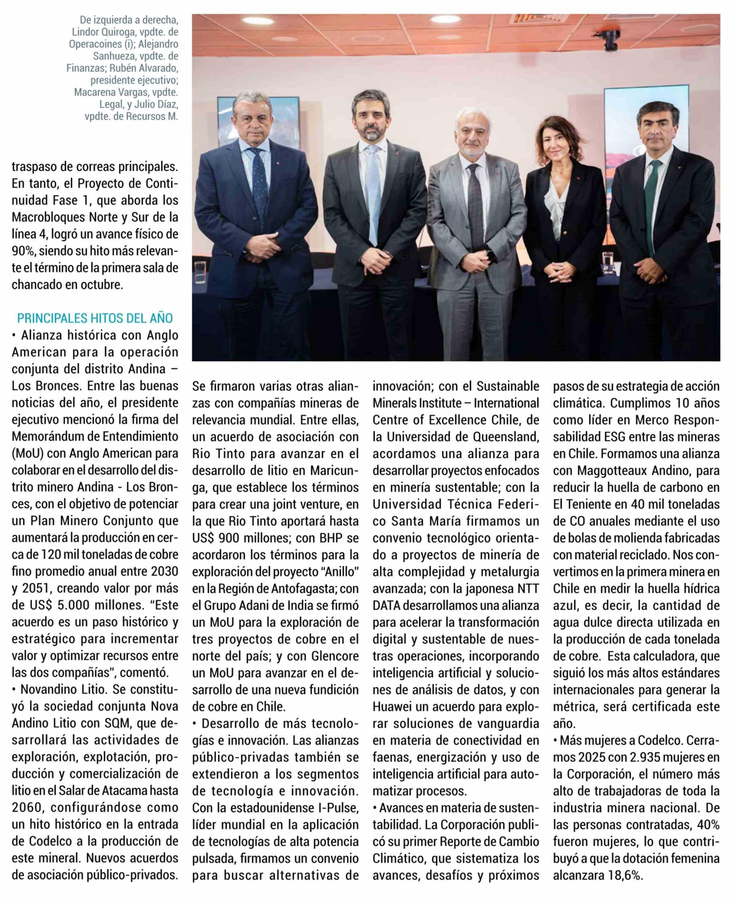 Título: CODELCO CERRÓ 2025 CON UN EBITDA DE US$ 6.670 MILLONES, UNA UTILIDAD CONSOLIDADA DE US$ 2.423 MILLONES Y UN APORTE AL FISCO DE US$ 1.778 MILLONES