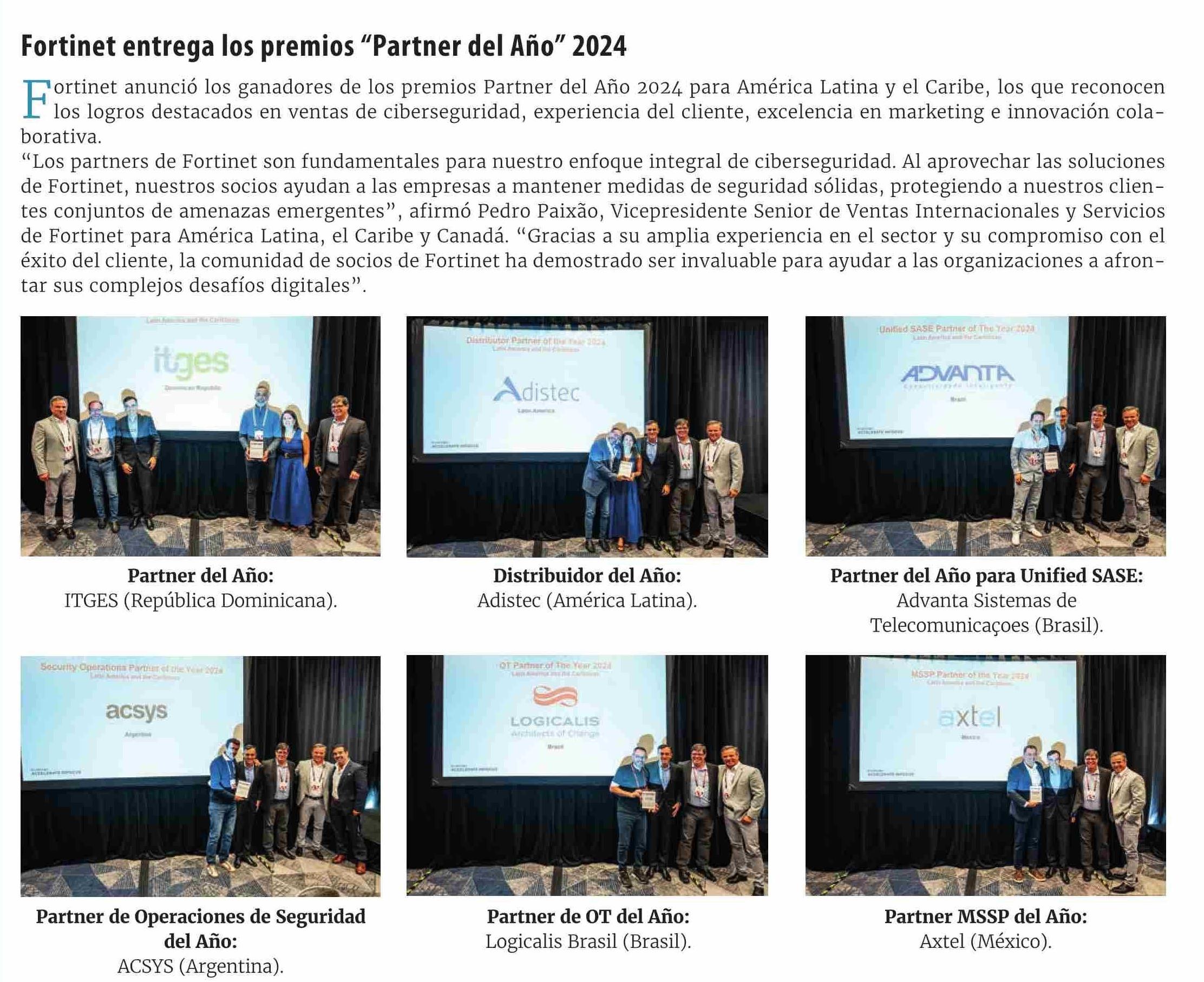 Fortinet entrega los premios “Partner del Año” 2024