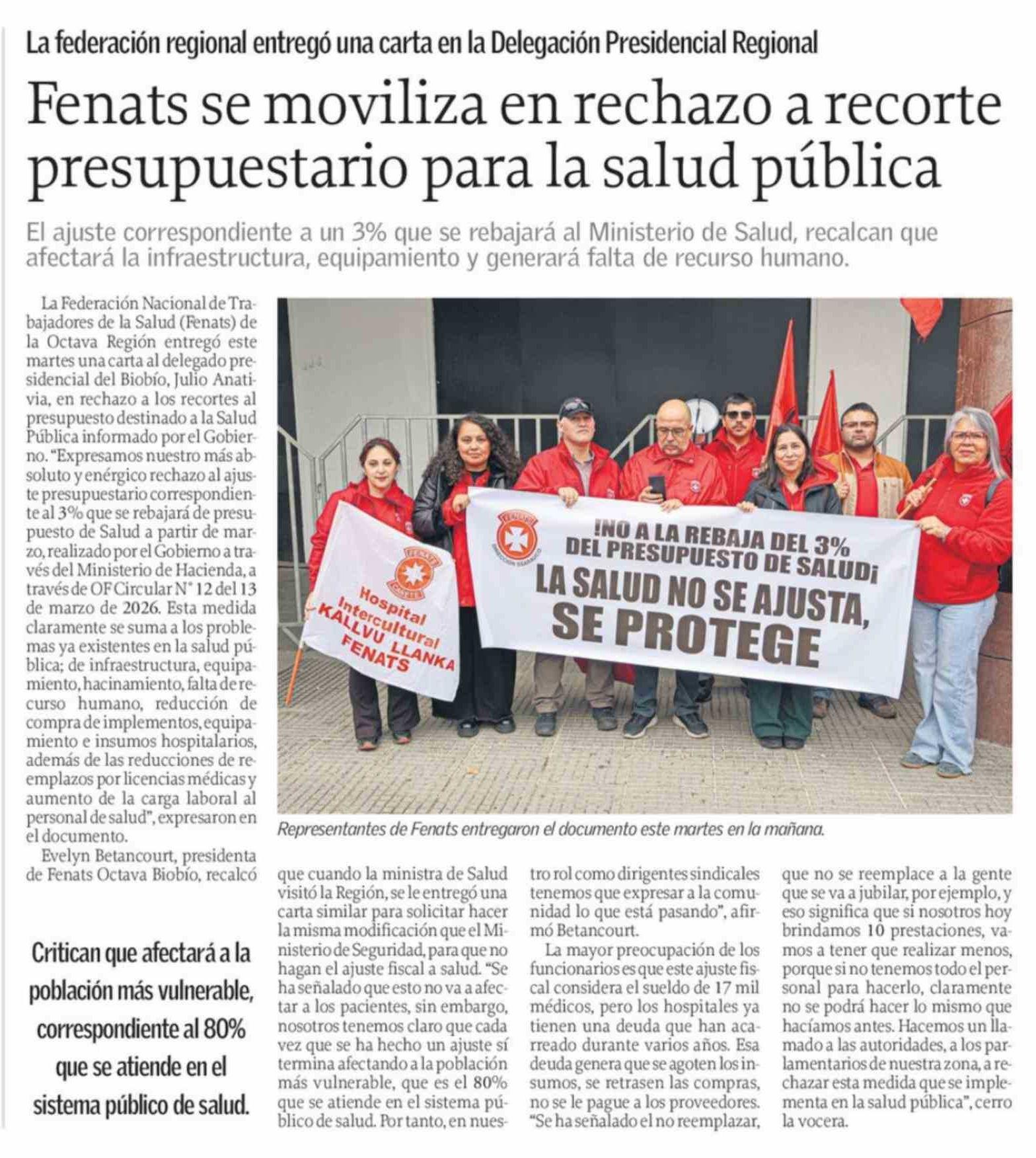 Fenats se moviliza en rechazo a recorte presupuestario para la salud pública