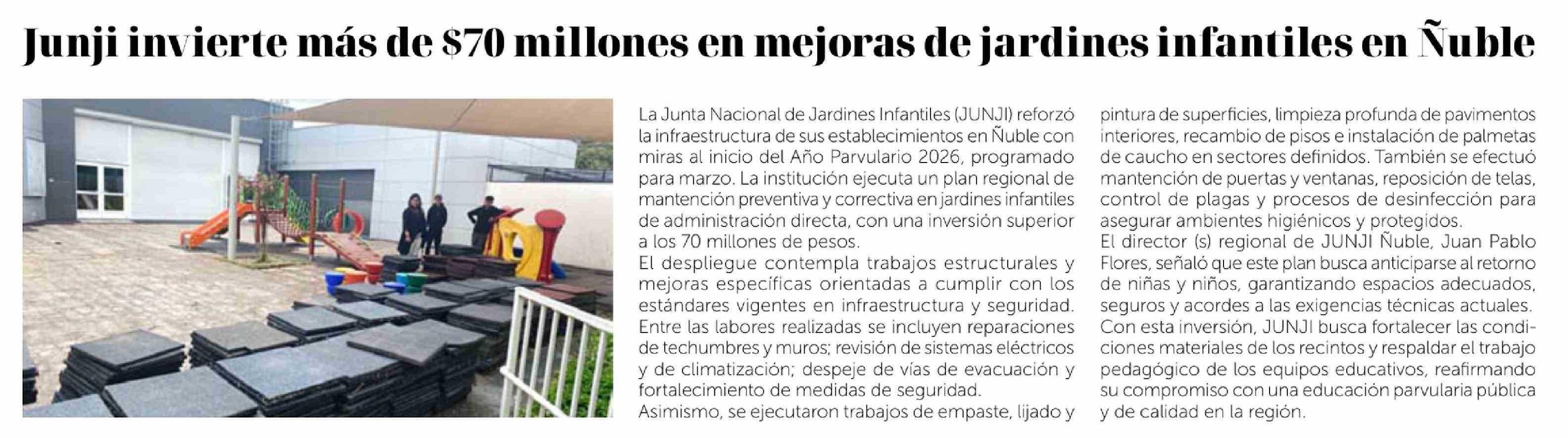 Junji invierte más de $70 millones en mejoras de jardines infantiles en Ñuble