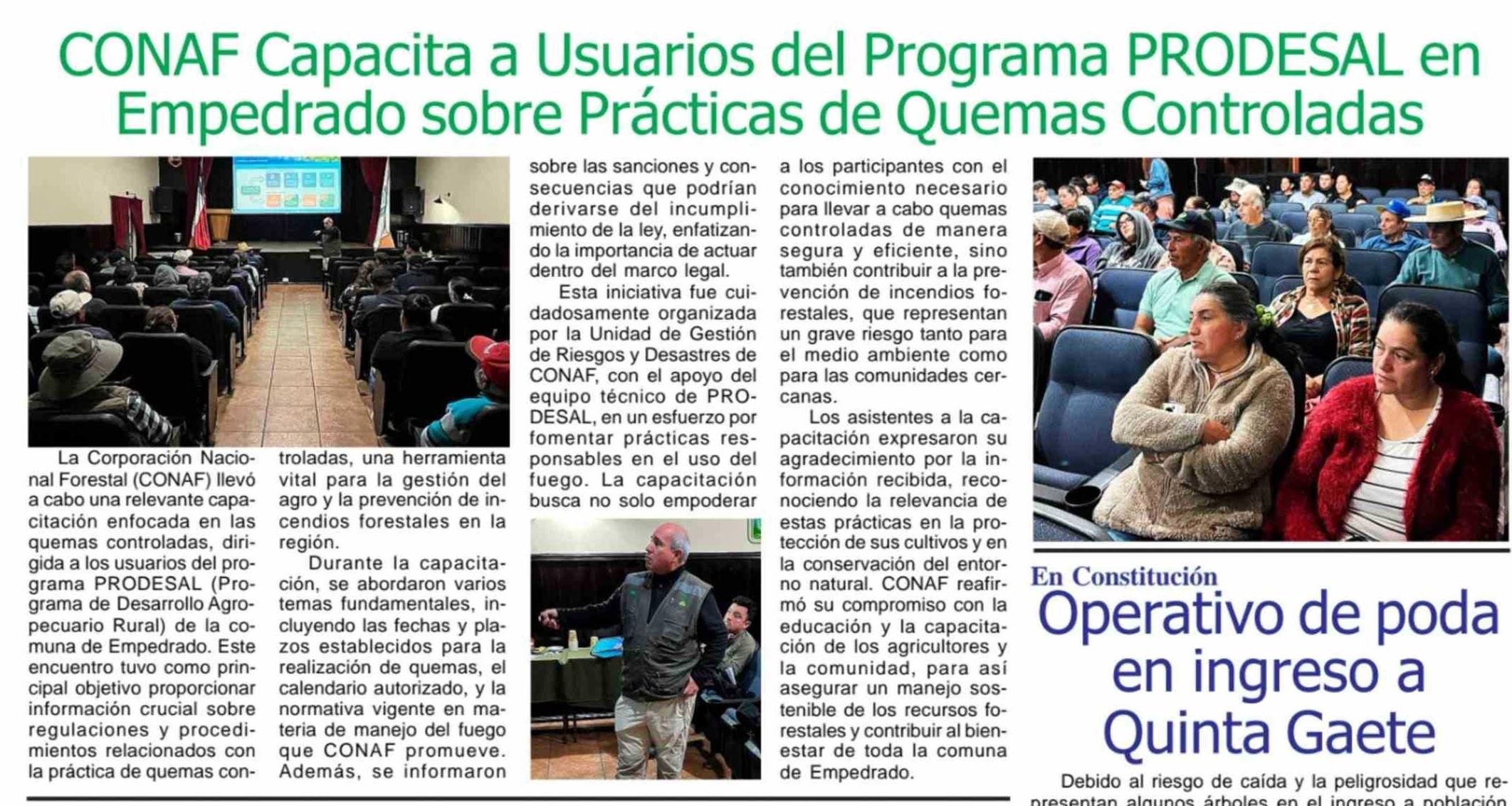 CONAF Capacita a Usuarios del Programa PRODESAL en Empedrado sobre Prácticas de Quemas Controladas