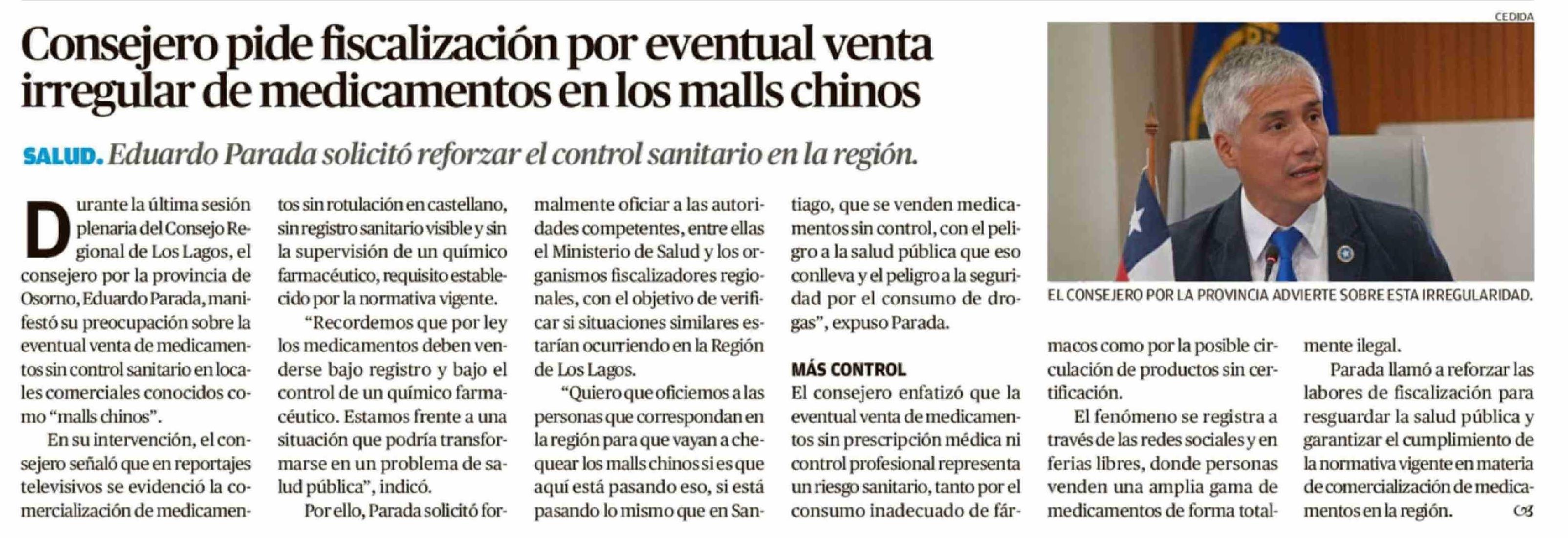 Consejero pide fiscalización por eventual venta irregular de medicamentos en los malls chinos
