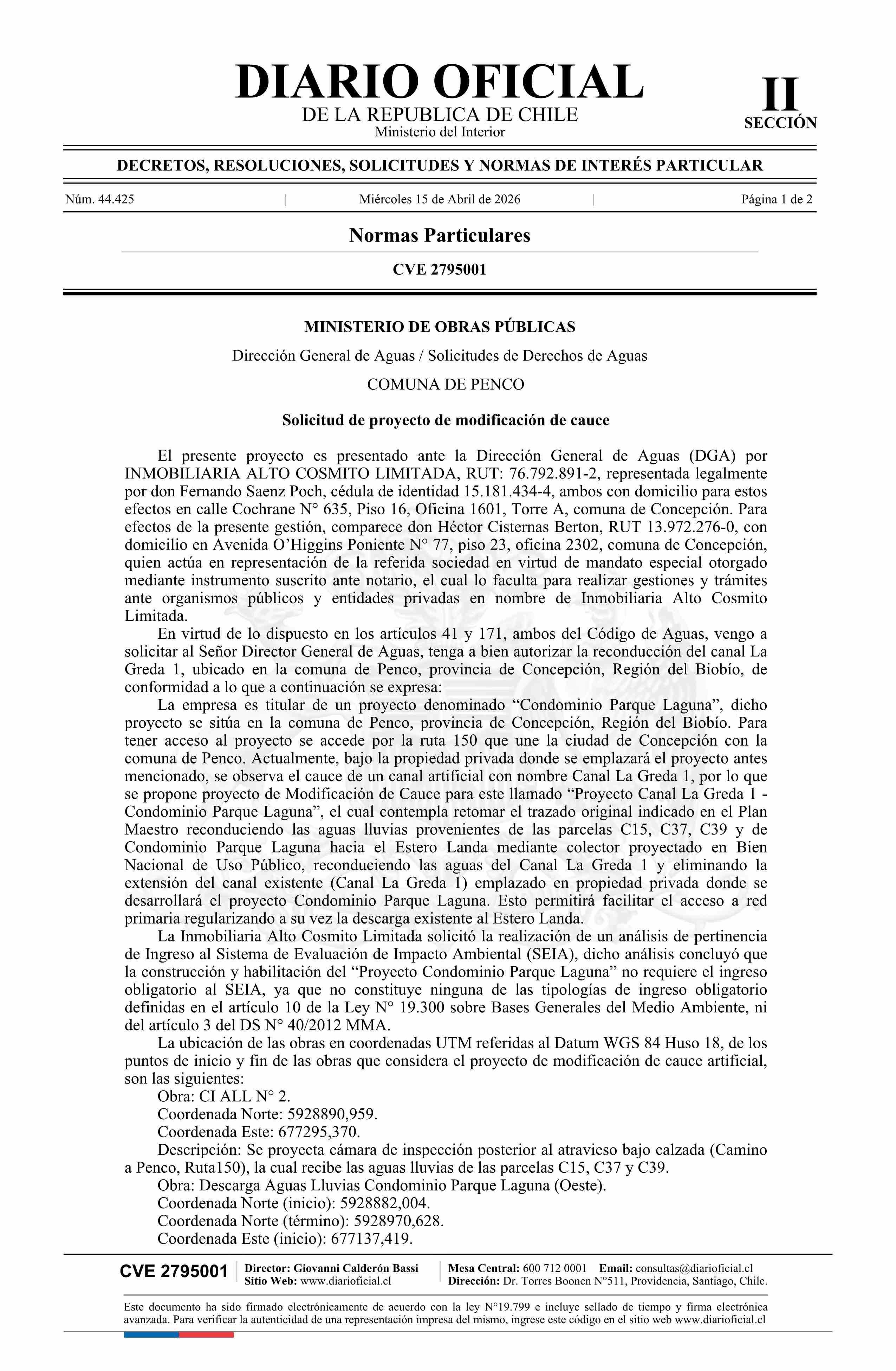 Diario Oficial Edición Electrónica (Diario Oficial de Chile - 2 Normas Particulares)