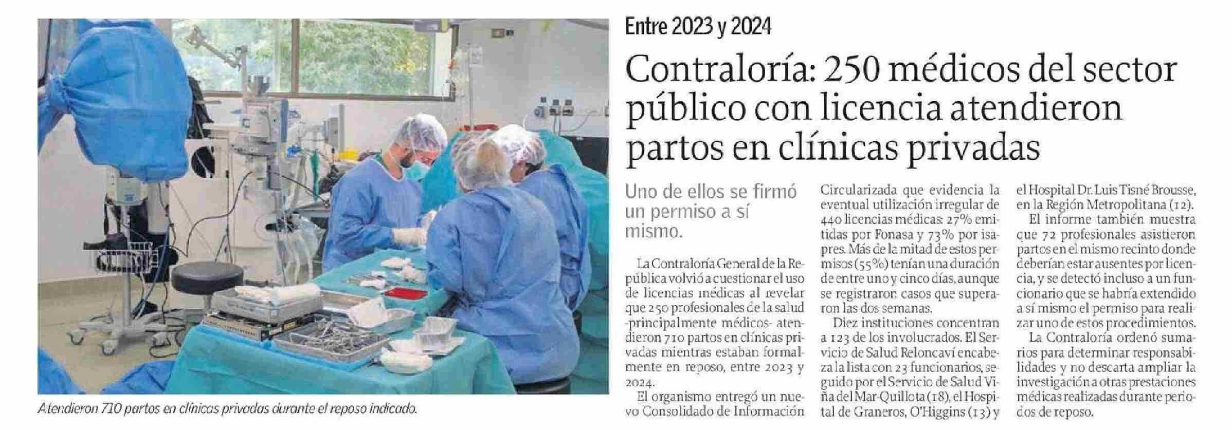 Contraloría: 250 médicos del sector público con licencia atendieron partos en clínicas privadas