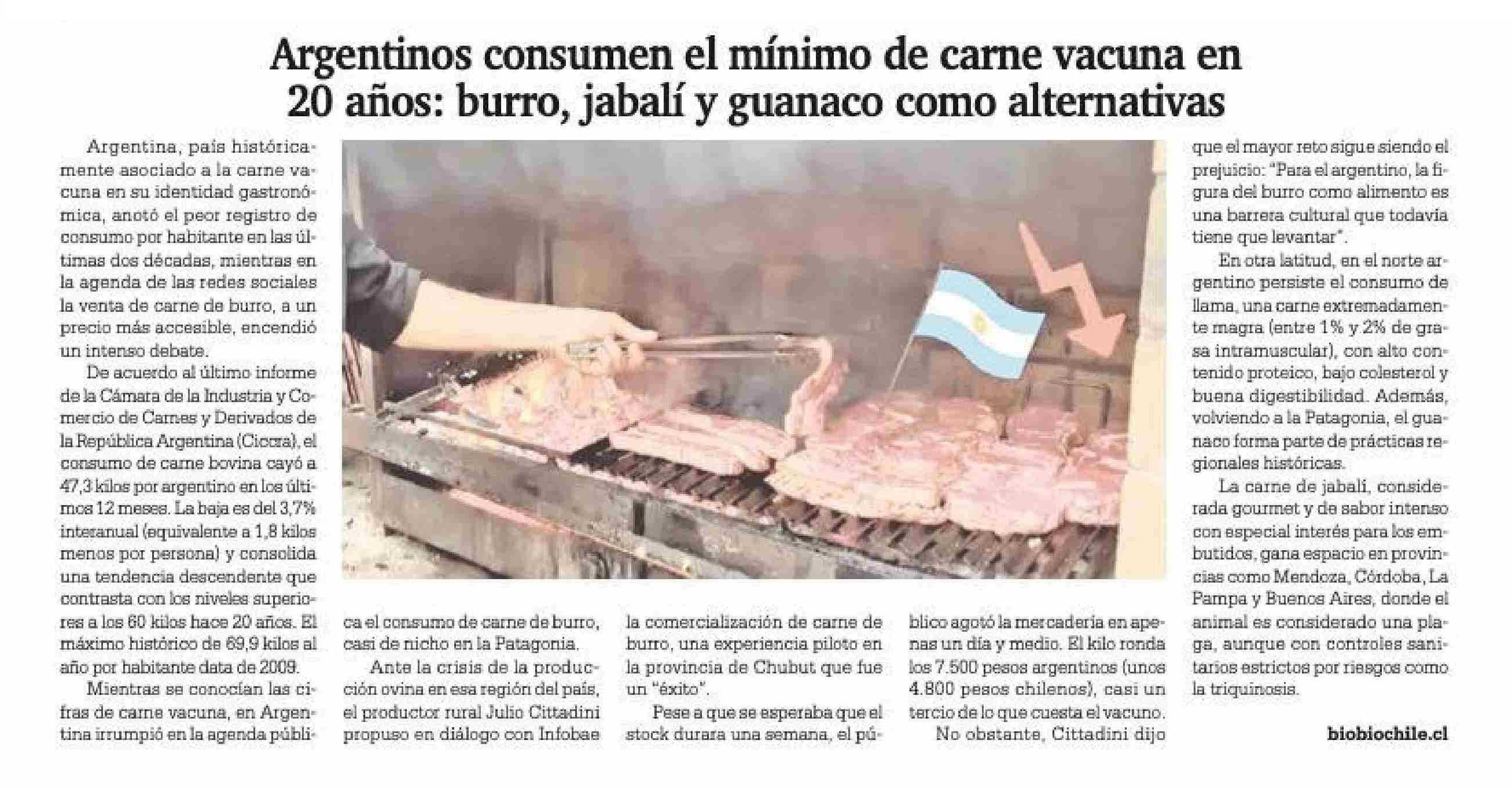 Argentinos consumen el mínimo de carne vacuna en 20 años: burro, jabalí y guanaco como alternativas