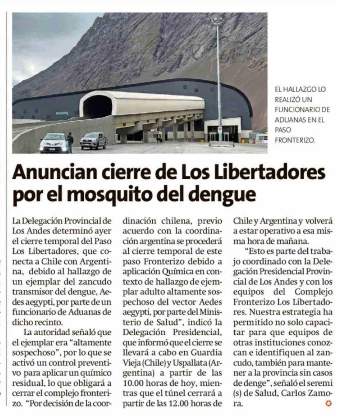 Título: Anuncian cierre de Los Libertadores por el mosquito del dengue