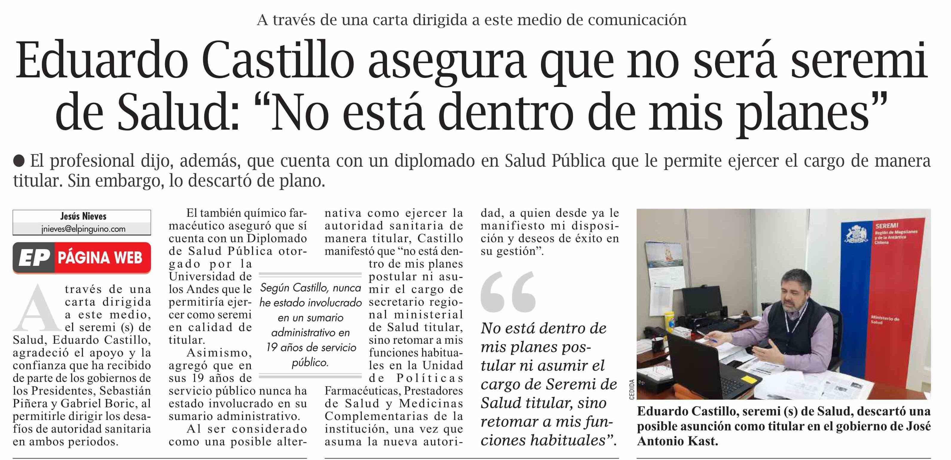 Eduardo Castillo asegura que no será seremi de Salud: "No está dentro de mis planes"