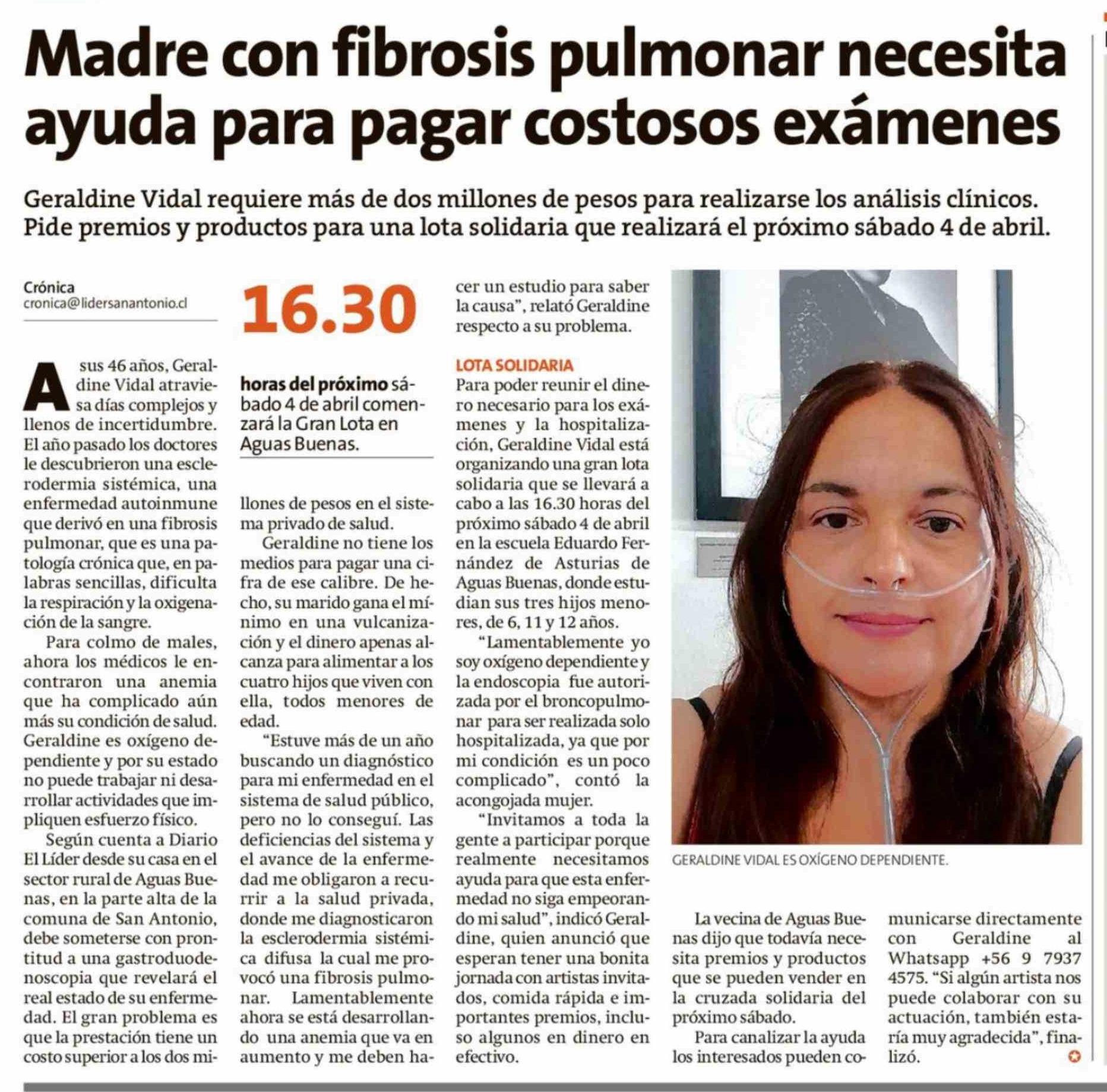 Madre con fibrosis pulmonar necesita ayuda para pagar costosos exámenes