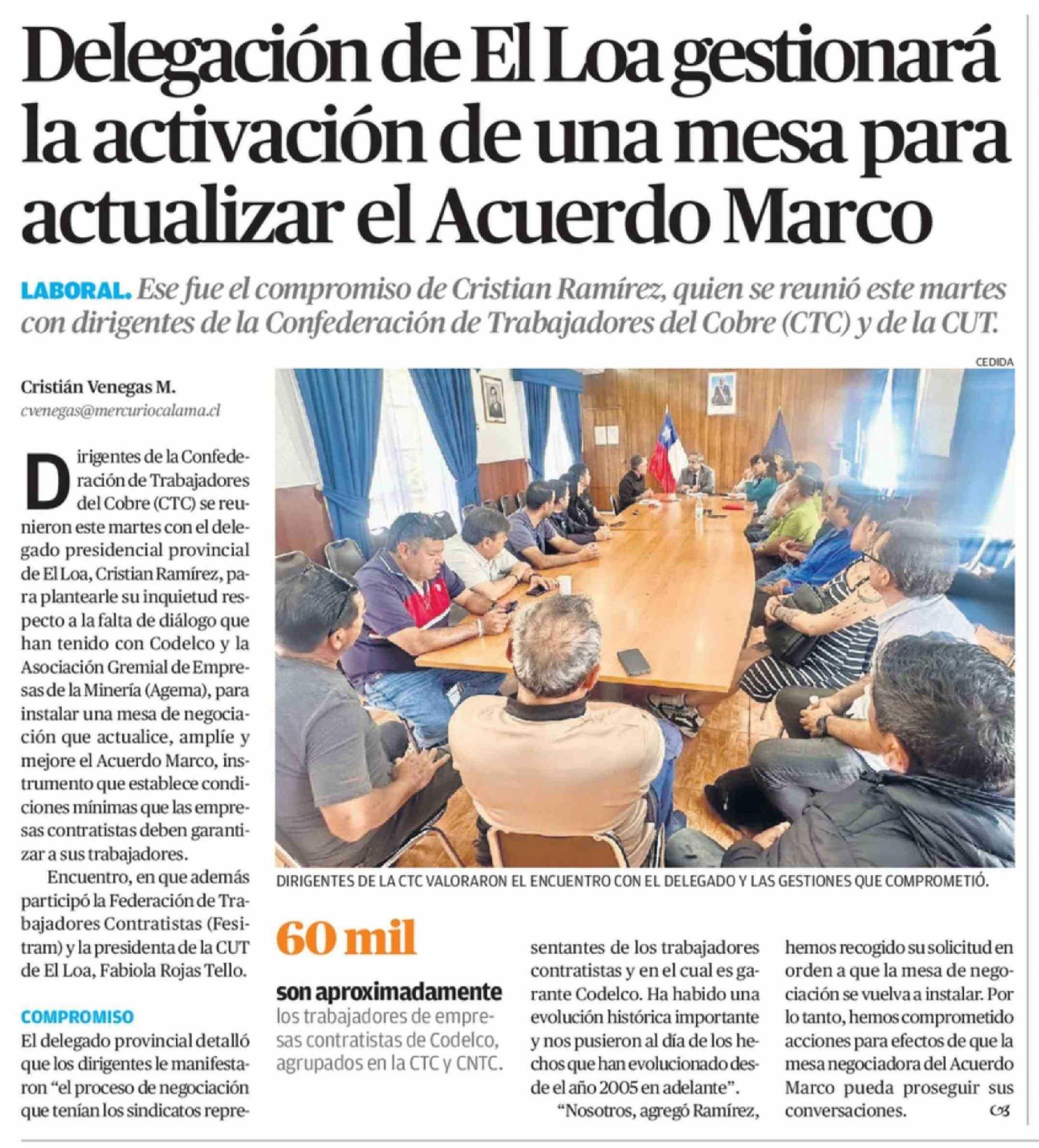 Delegación de El Loa gestionará la activación de una mesa para actualizar el Acuerdo Marco