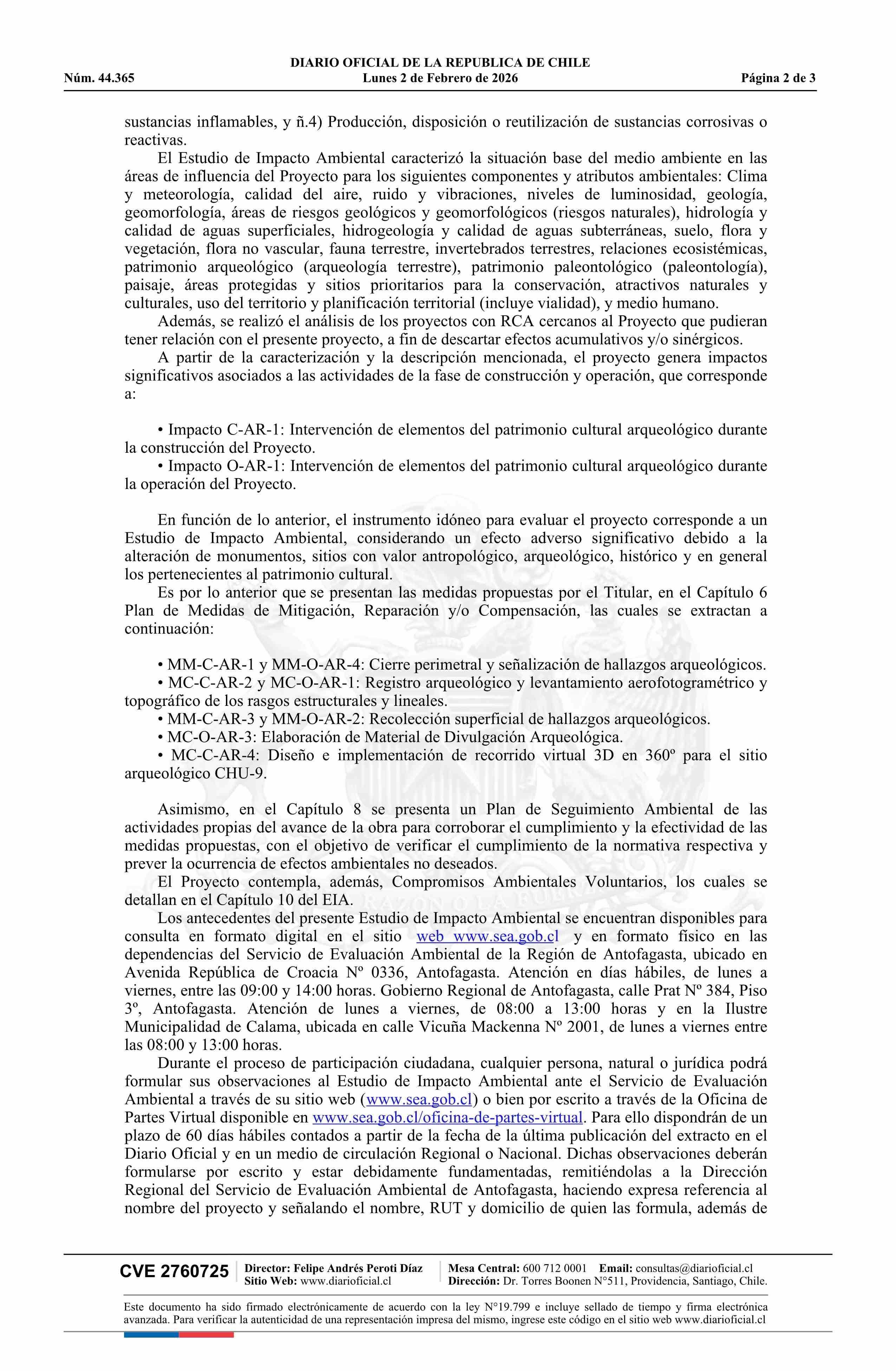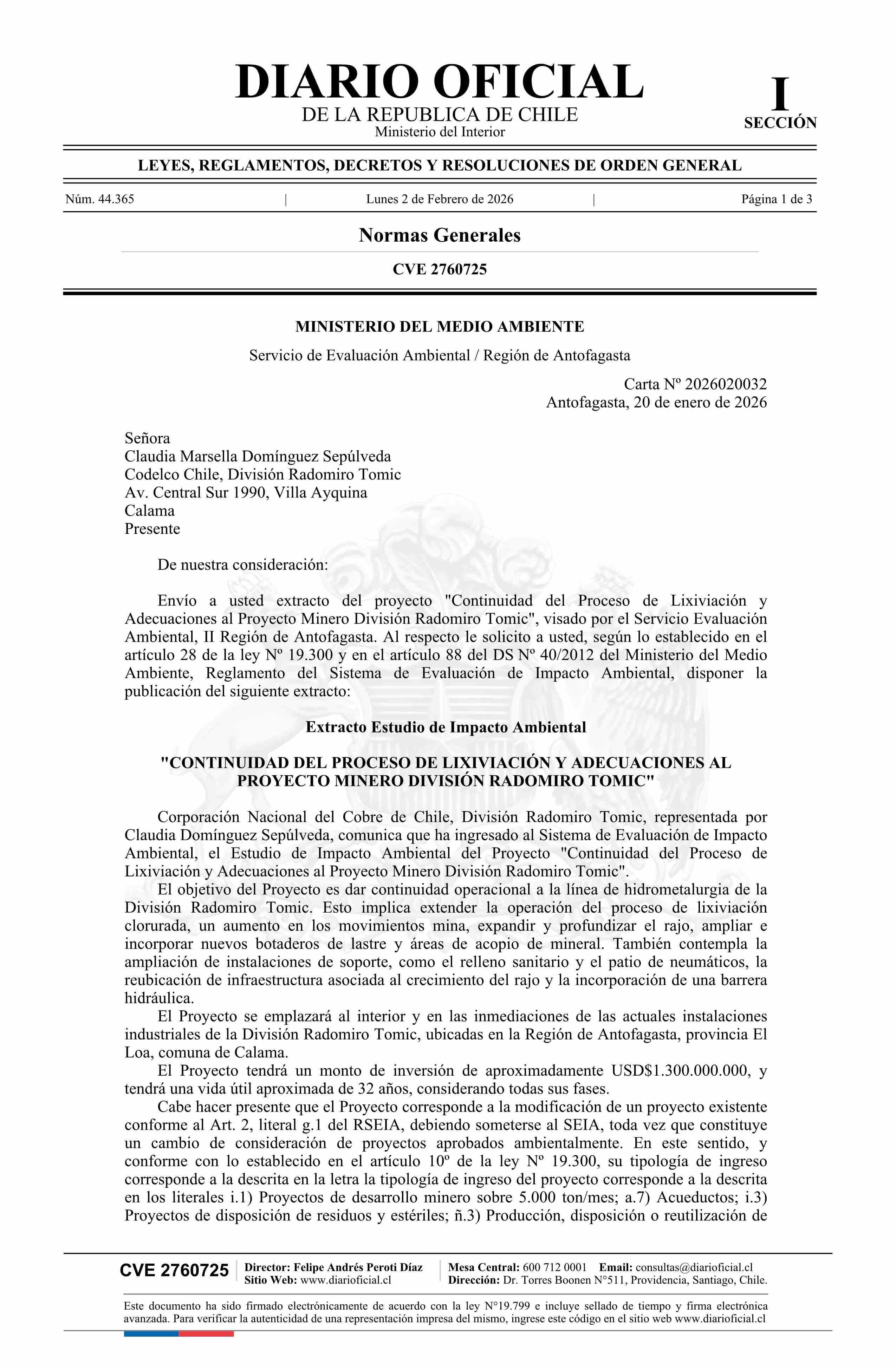 | Título: | Extracto de Estudio de Impacto Ambiental proyecto Continuidad del Proceso de Lixiviación y Adecuaciones al Proyecto Minero División Radomiro Tomic |
