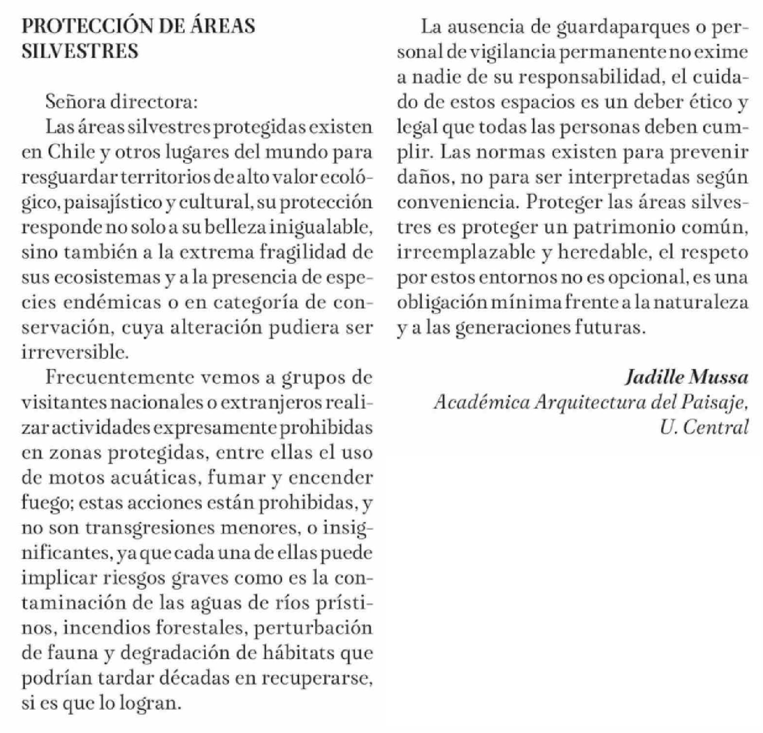 CARTAS: PROTECCIÓN DE ÁREAS SILVESTRES