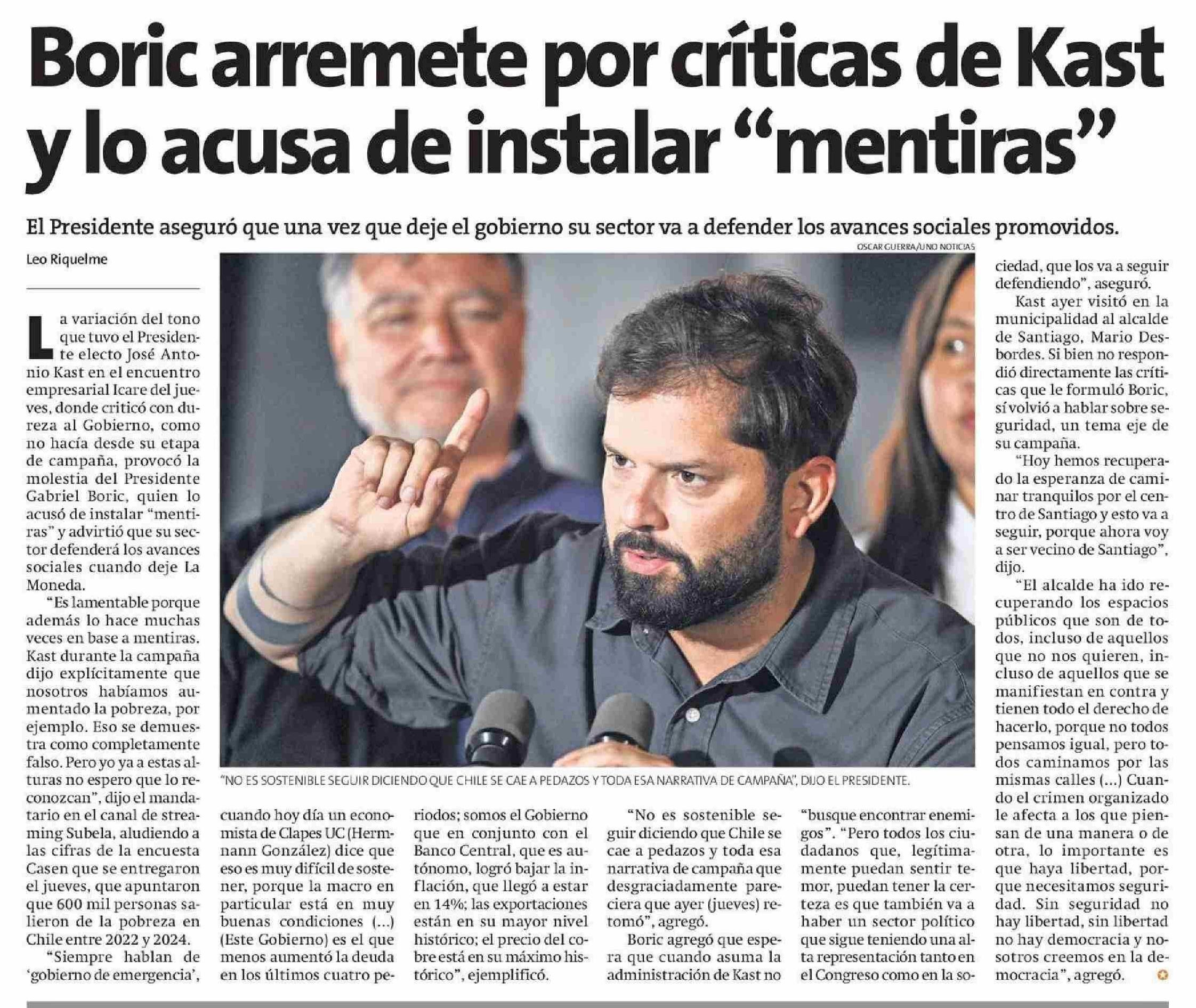 Boric arremete por críticas de Kast y lo acusa de instalar "mentiras"