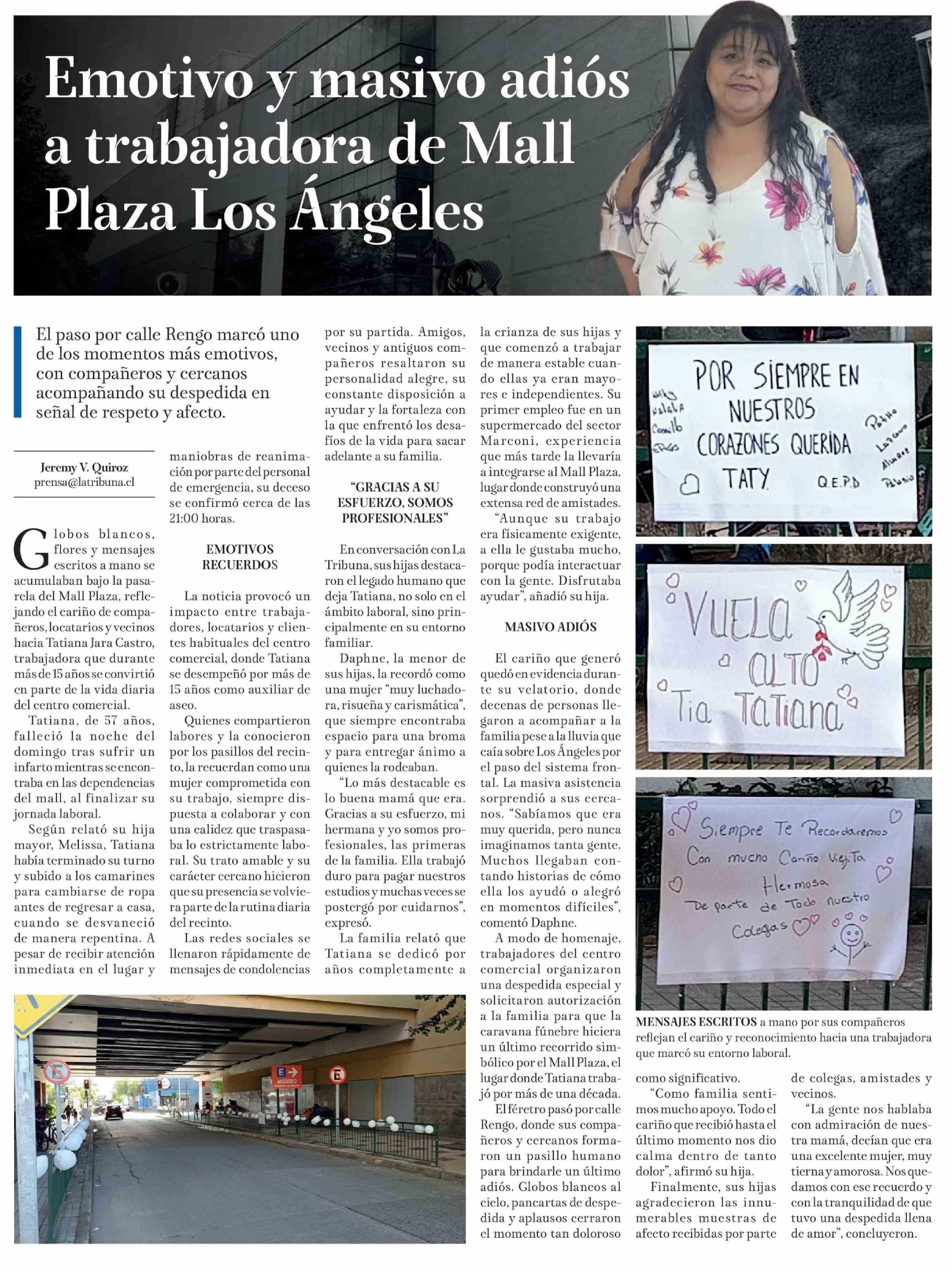 Emotivo y masivo adiós a trabajadora de Mall Plaza Los Angeles