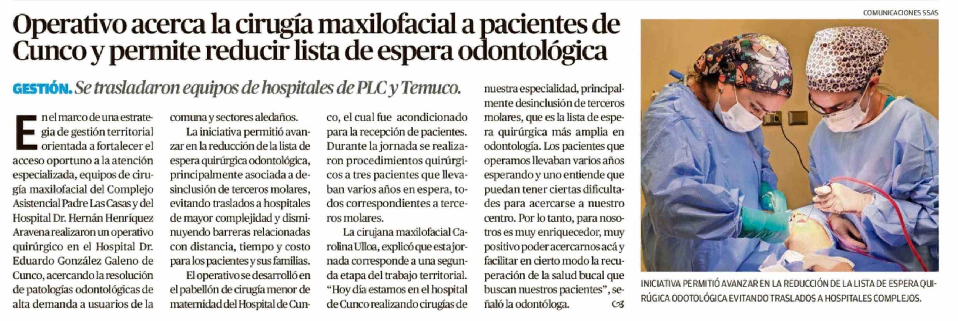 Operativo acerca la cirugía maxilofacial a pacientes de Cunco y permite reducir lista de espera odontológica