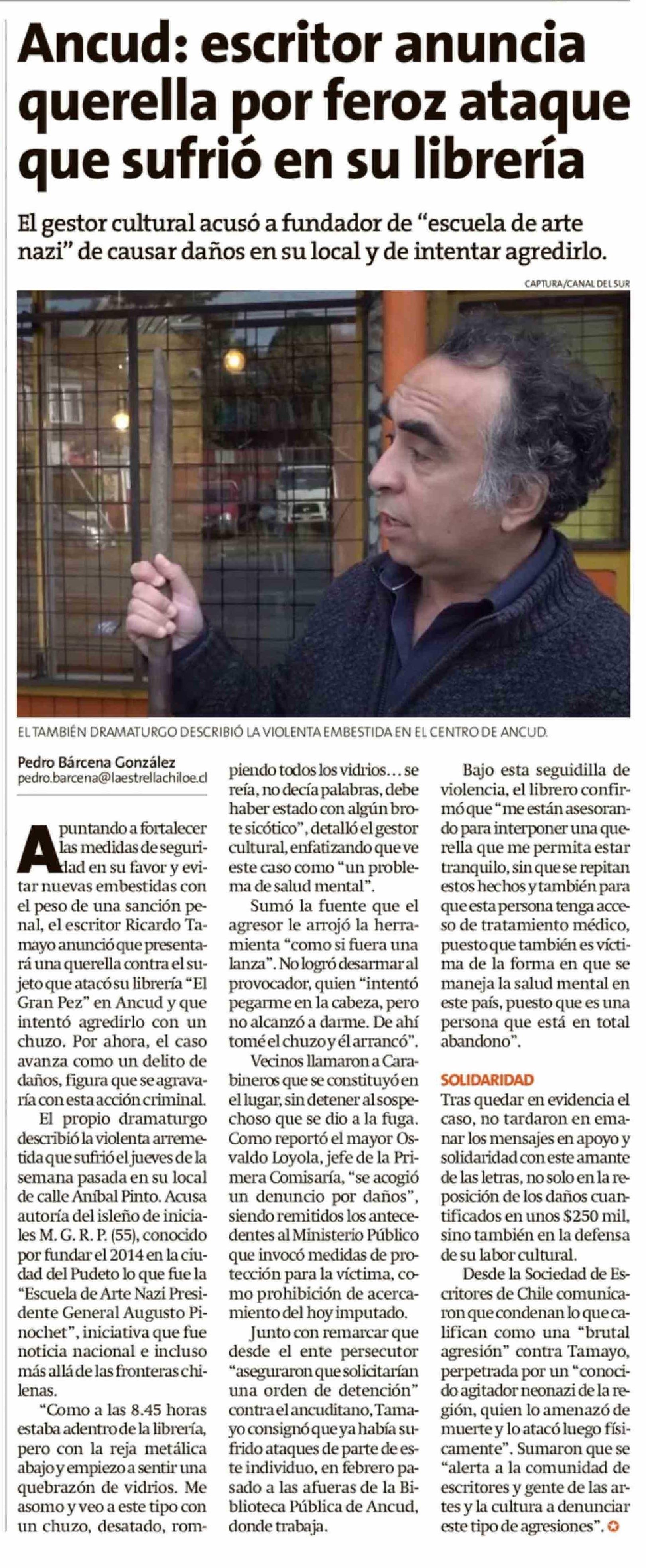 Ancud: escritor anuncia querella por feroz ataque que sufrió en su librería