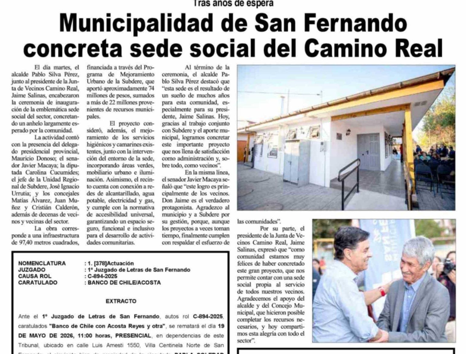 Municipalidad de San Fernando concreta sede social del Camino Real