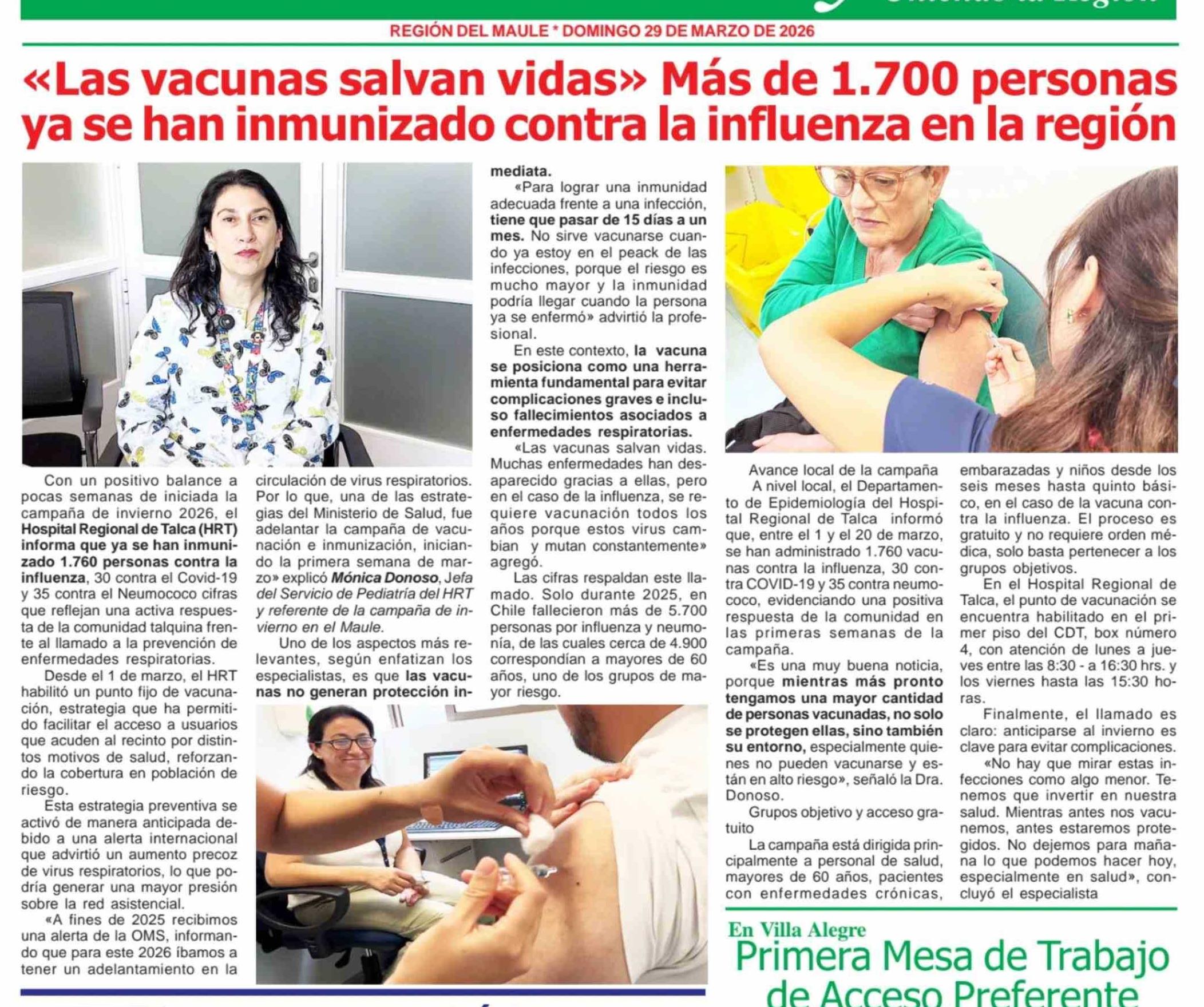 «Las vacunas salvan vidas» Más de 1.700 personas ya se han inmunizado contra la influenza en la región
