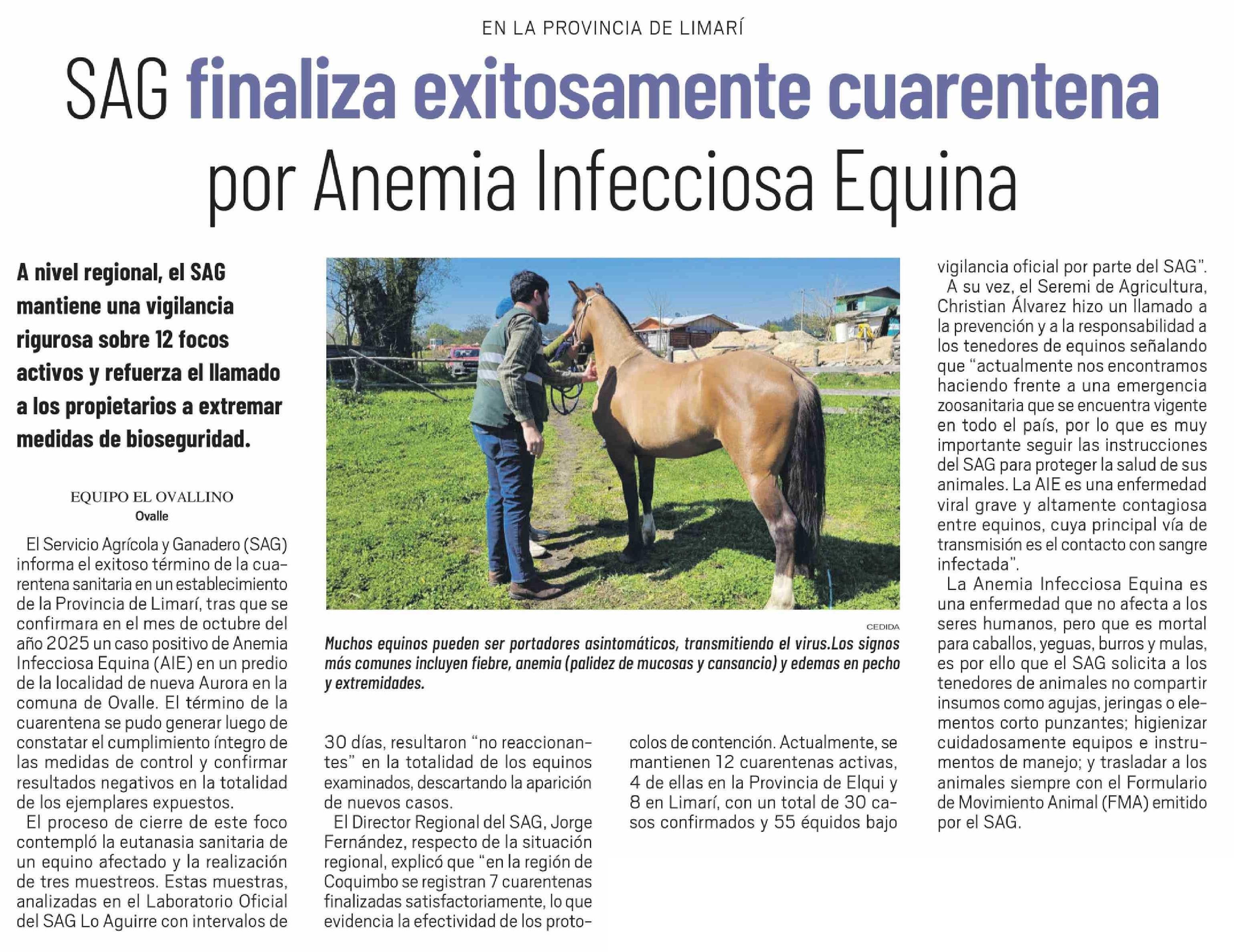 SAG finaliza exitosamente cuarentena por Anemia Infecciosa Equina