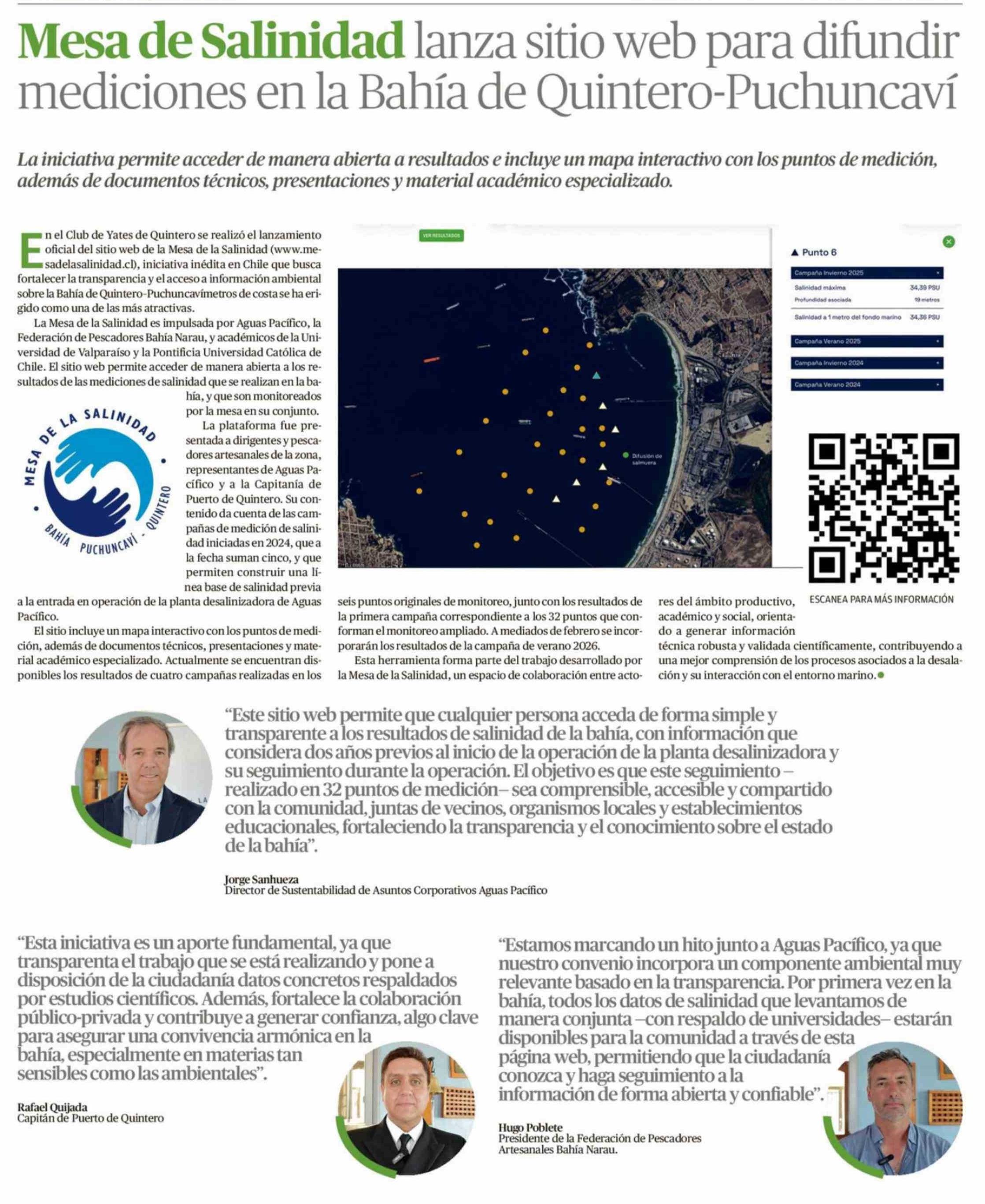 Mesa de Salinidad lanza sitio web para difundir mediciones en la Bahía de Quintero-Puchuncaví