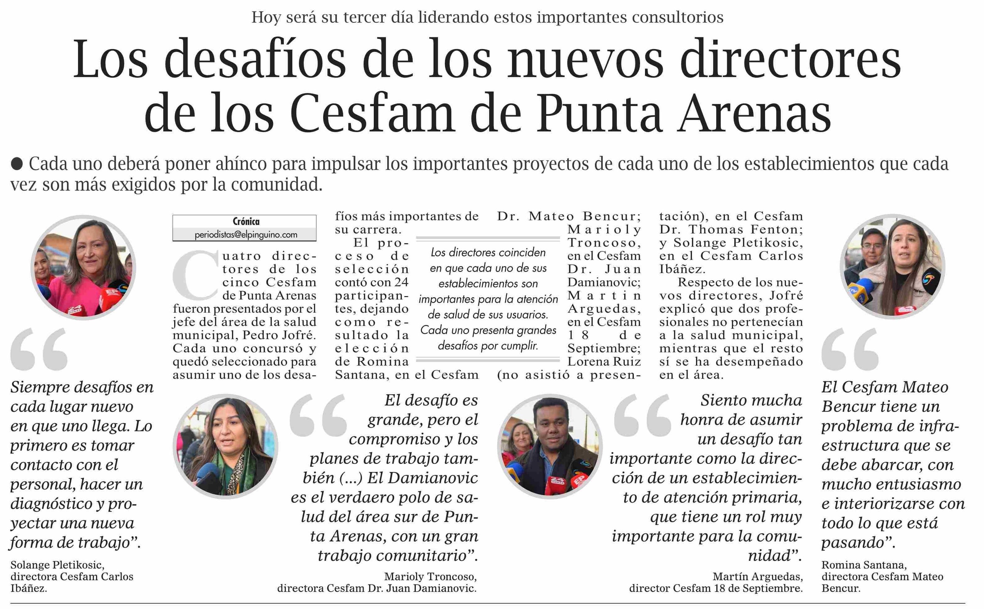 Los desafíos de los nuevos directores de los Cesfam de Punta Arenas