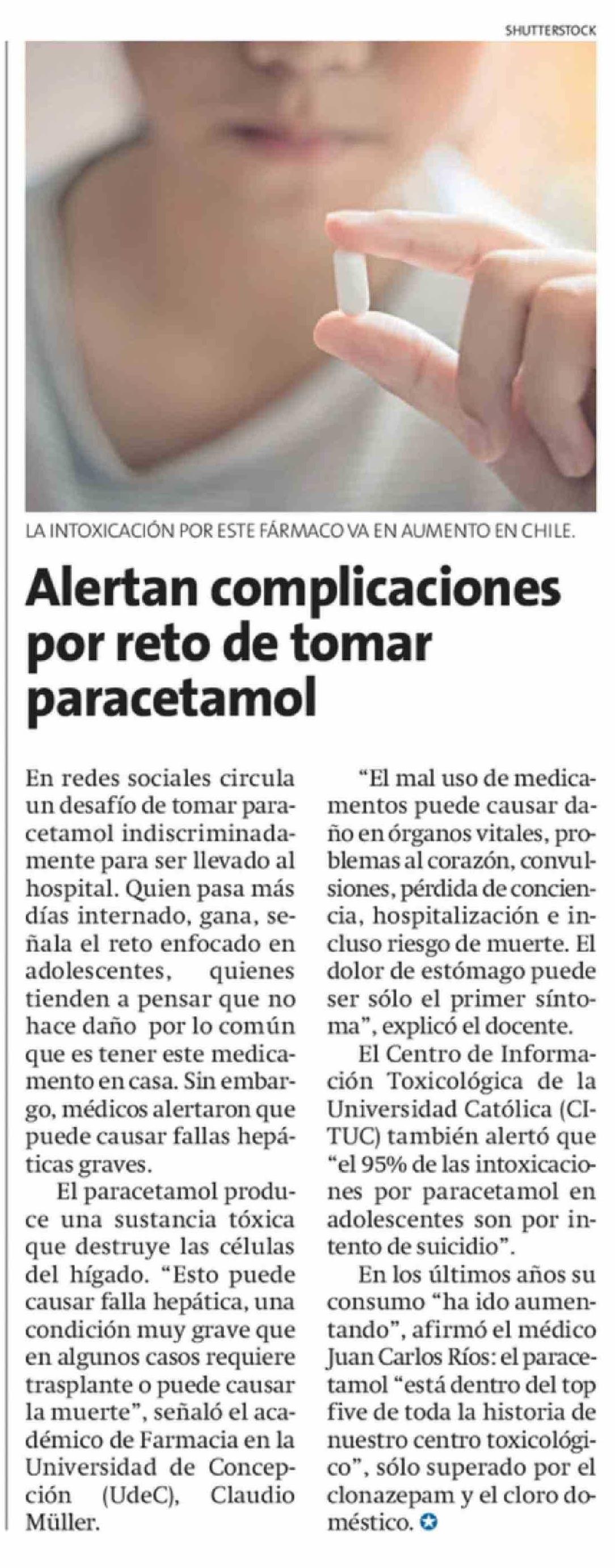 Título: Alertan complicaciones por reto de tomar paracetamol
