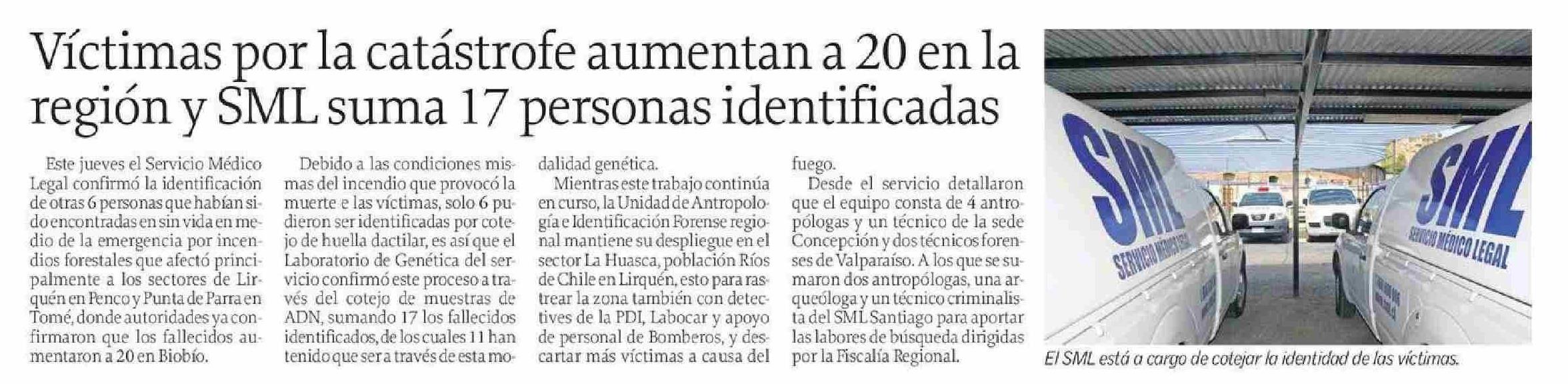 Víctimas por la catástrofe aumentan a 20 en la región y SML suma 17 personas identificadas